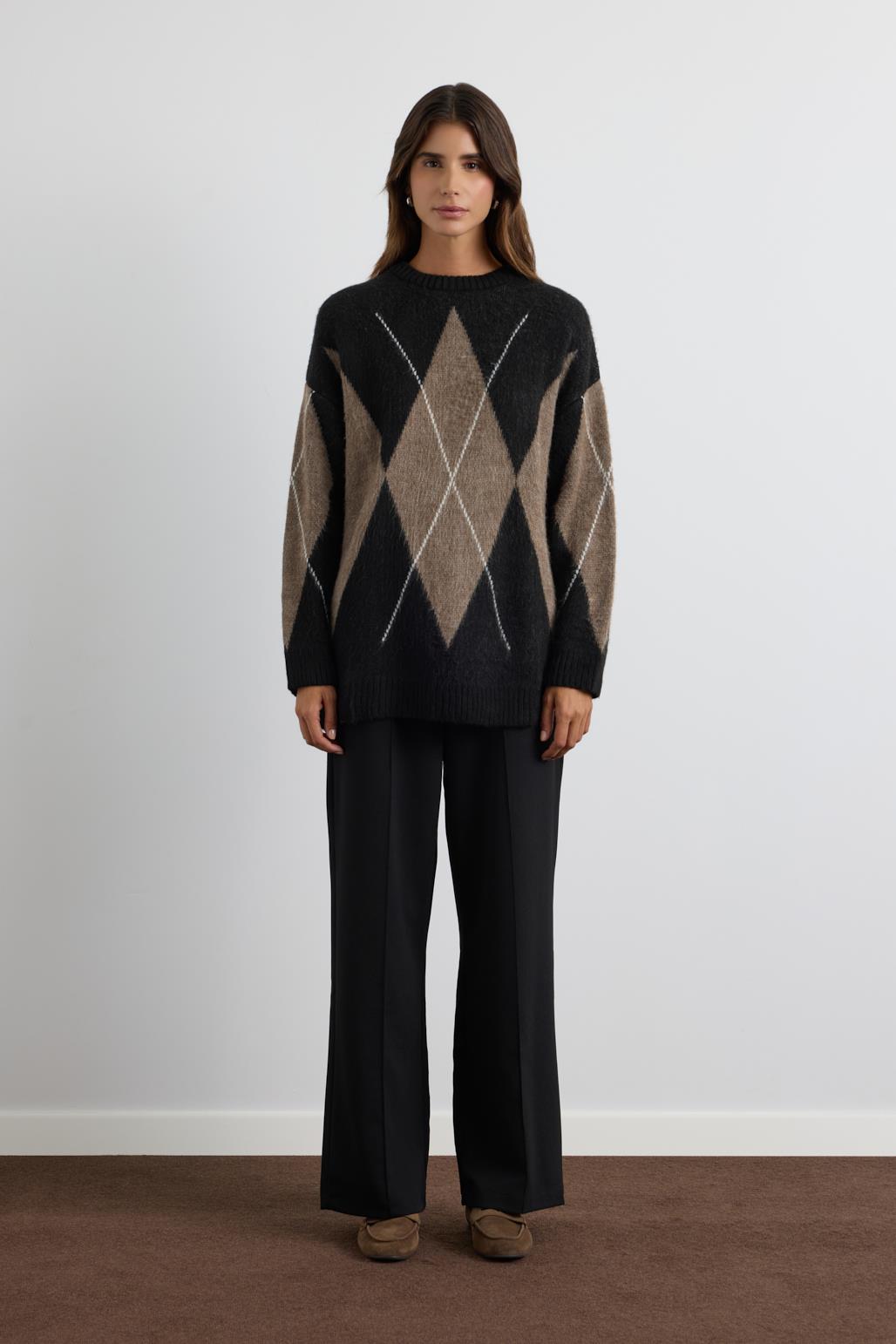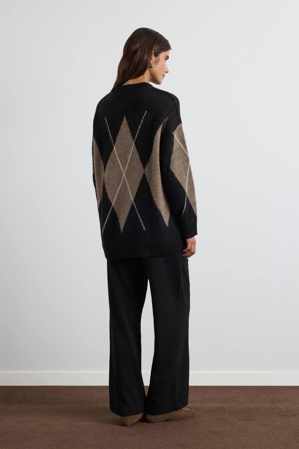 Baklava Desenli Triko Kazak Siyah