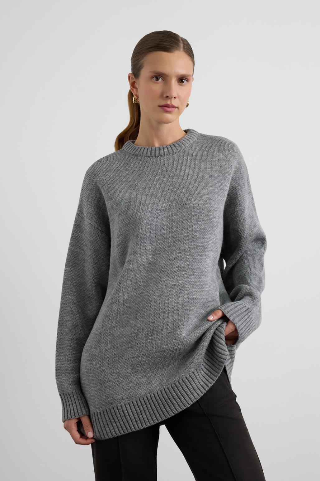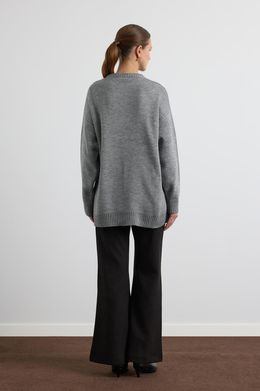 Bisiklet Yaka Basic Triko Kazak Antrasit