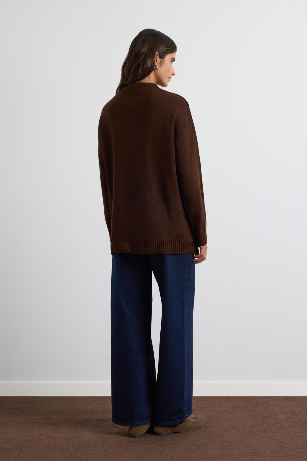 Bisiklet Yaka Basic Triko Kazak Kahve