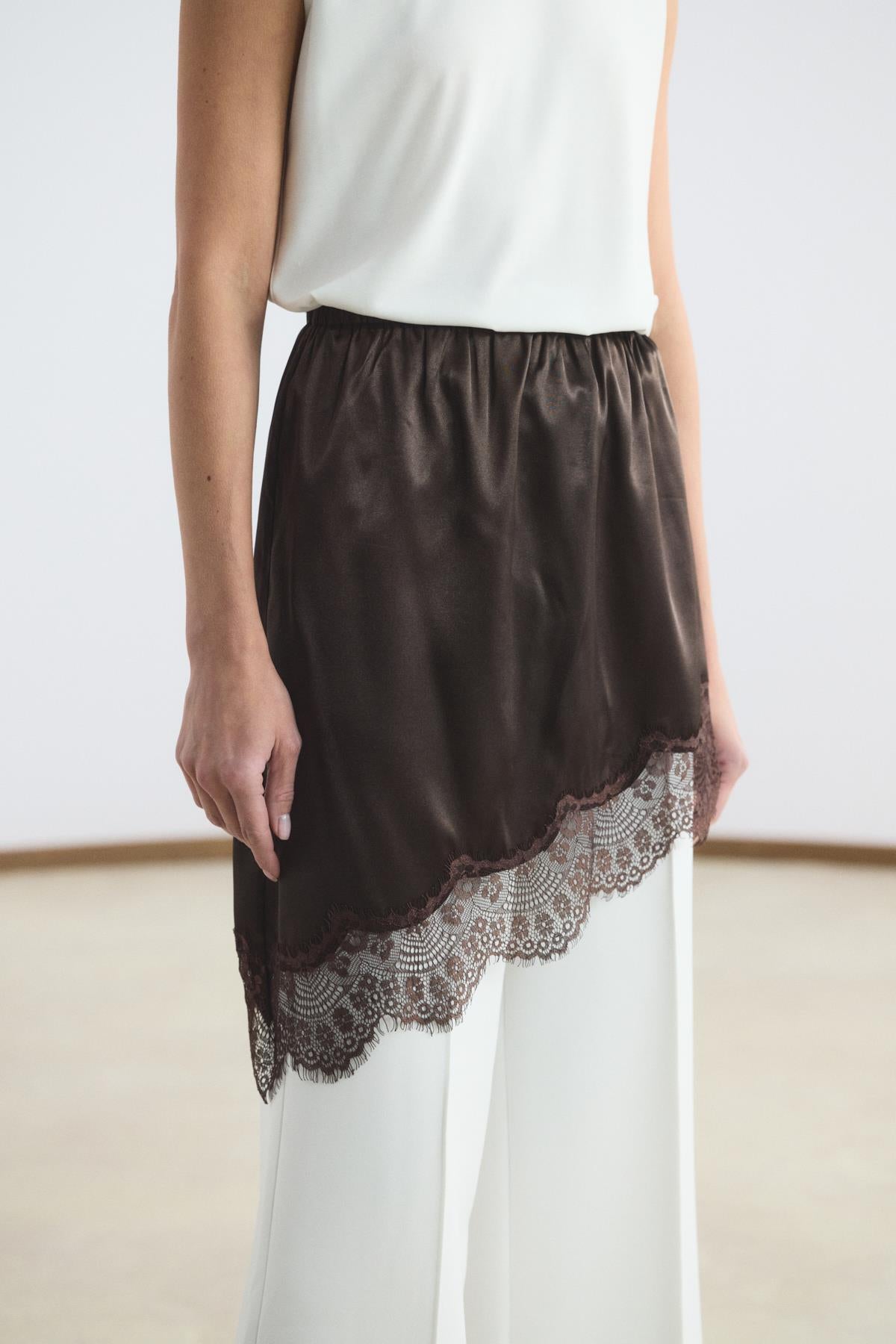 Dantel Şeritli Etek İçlik Kahverengi