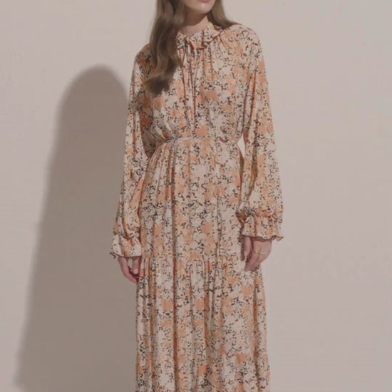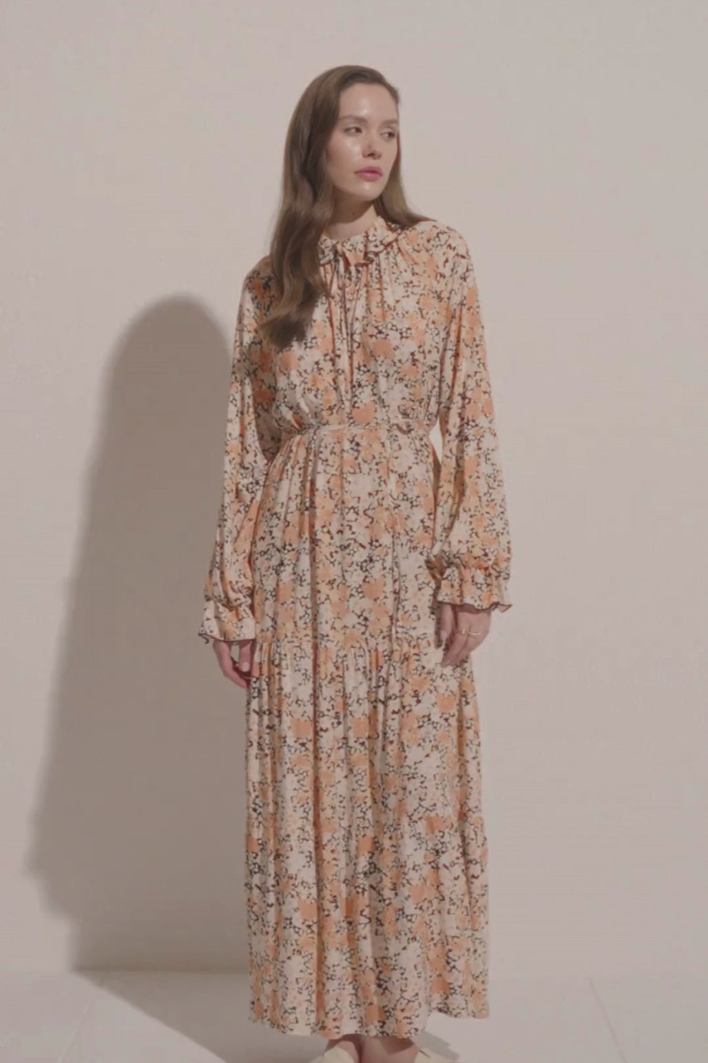 Diane Viskon Fırfırlı Uzun Elbise Soft Oranj
