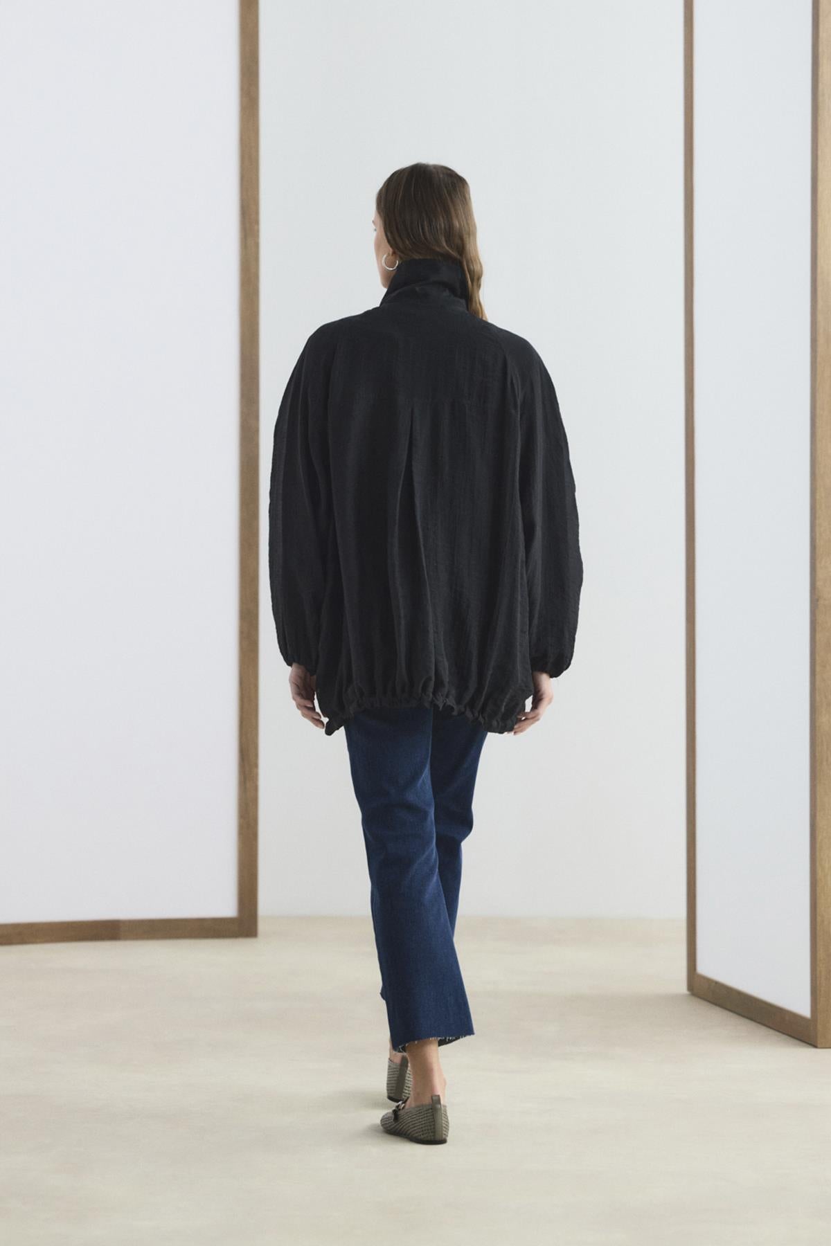 Dik Yaka Büzgülü Bomber Ceket Siyah