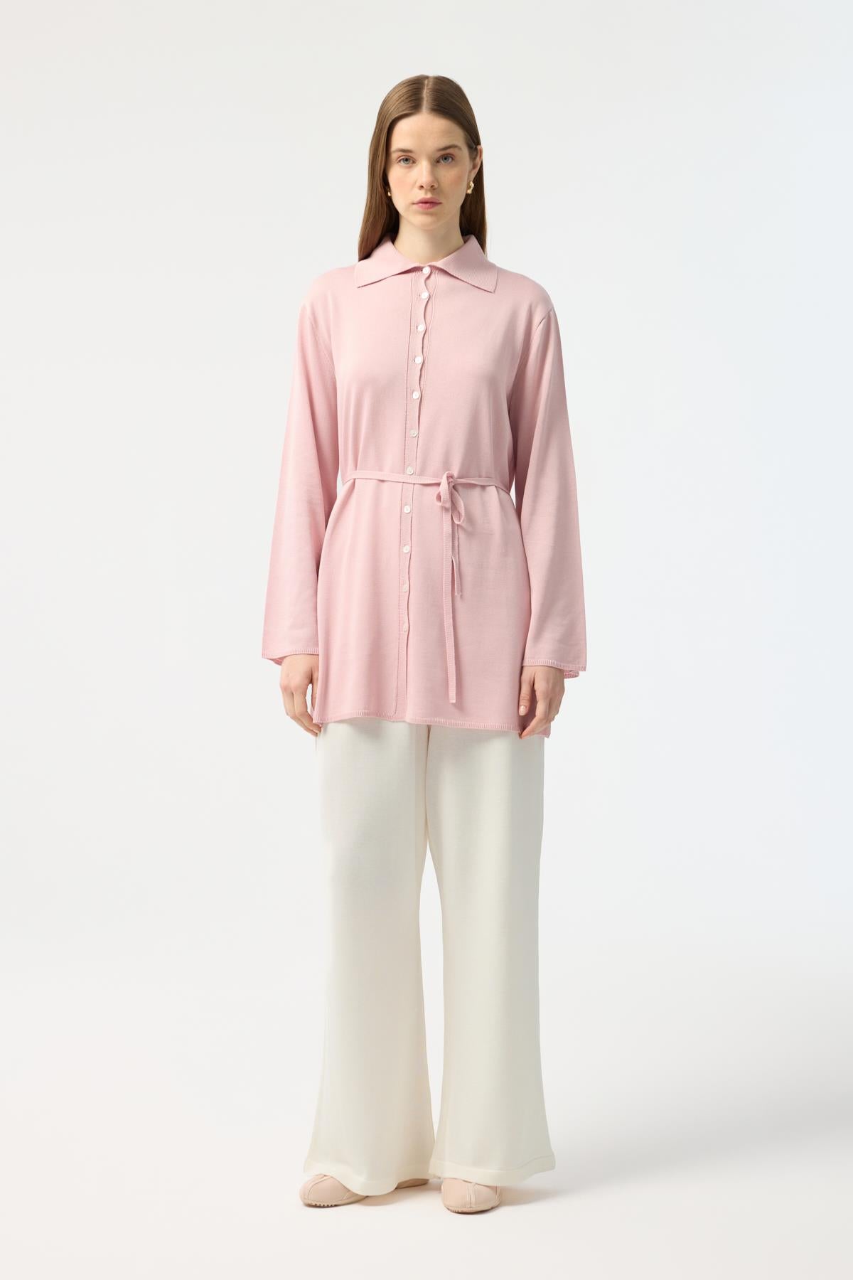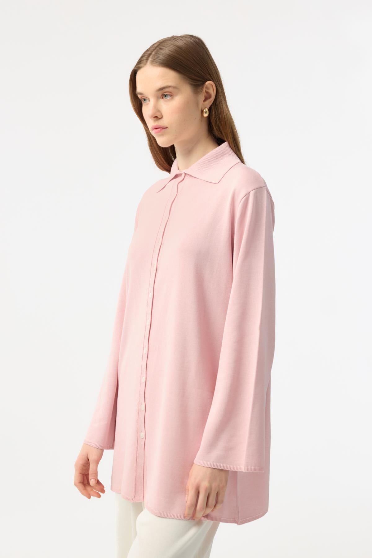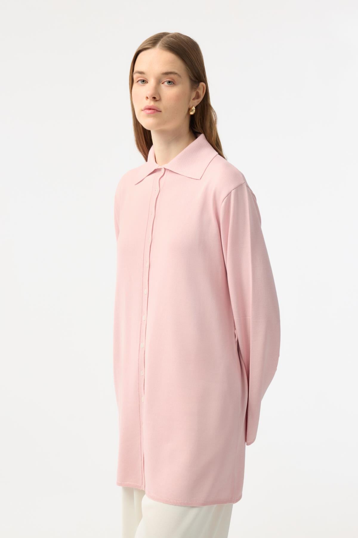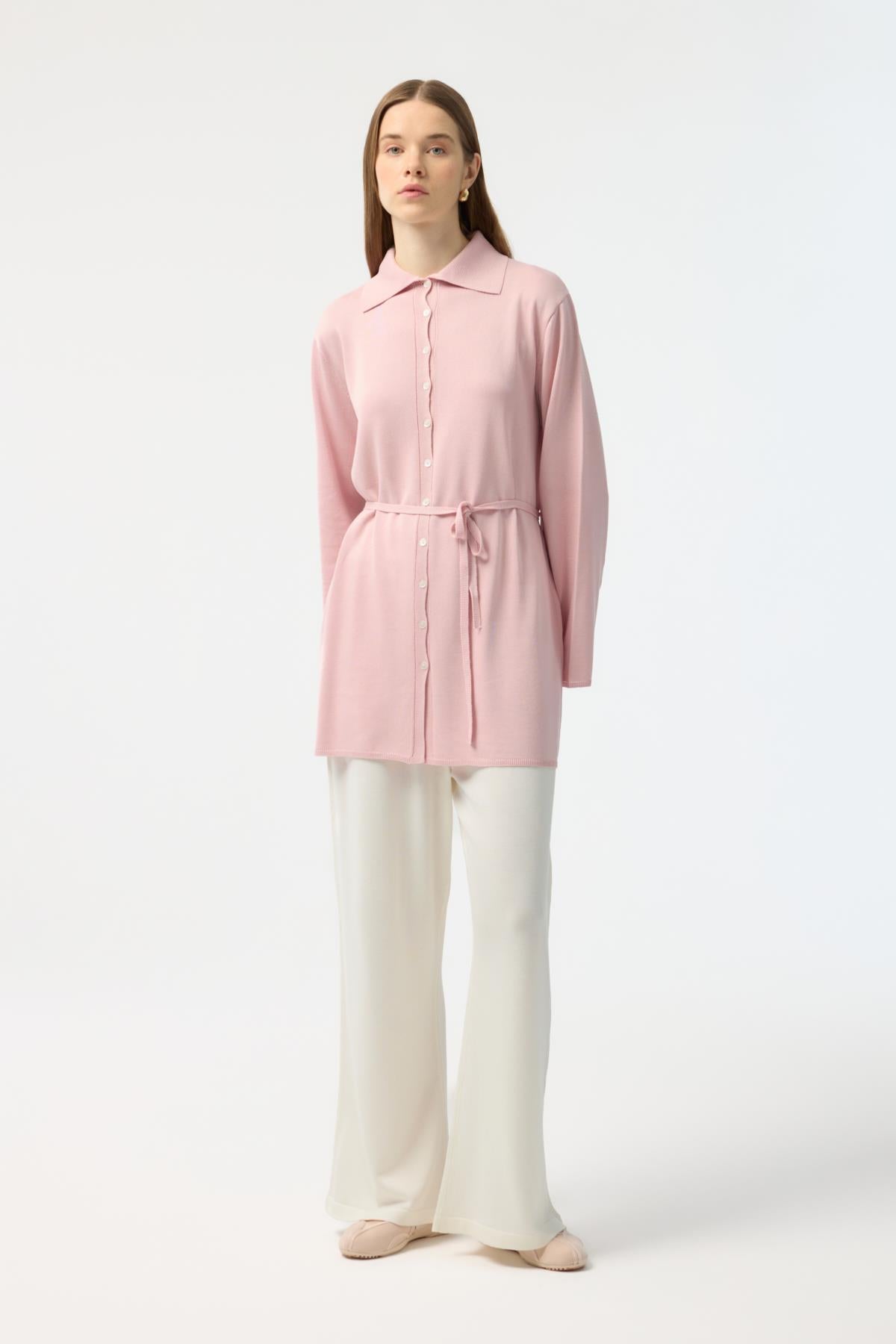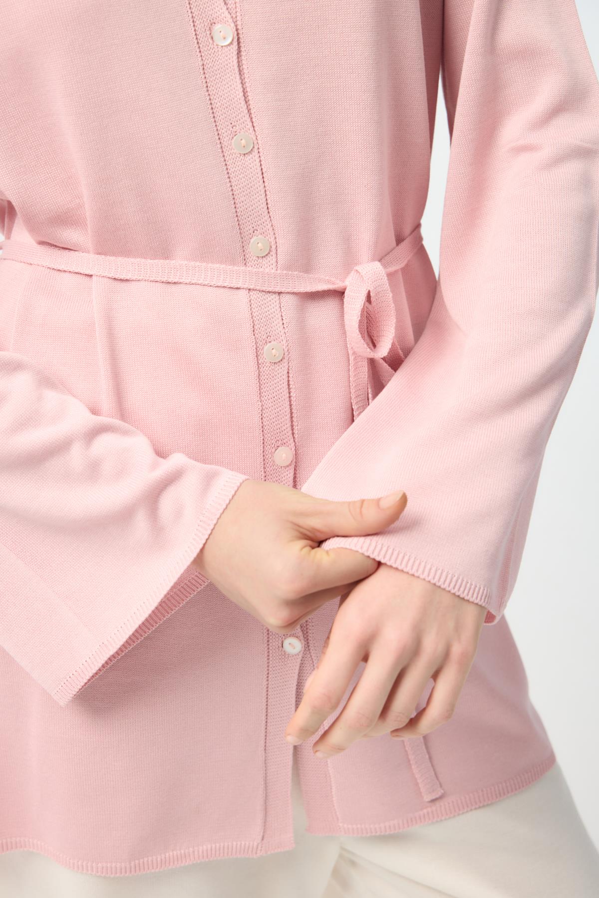 Düğmeli İnce Triko Hırka Pembe