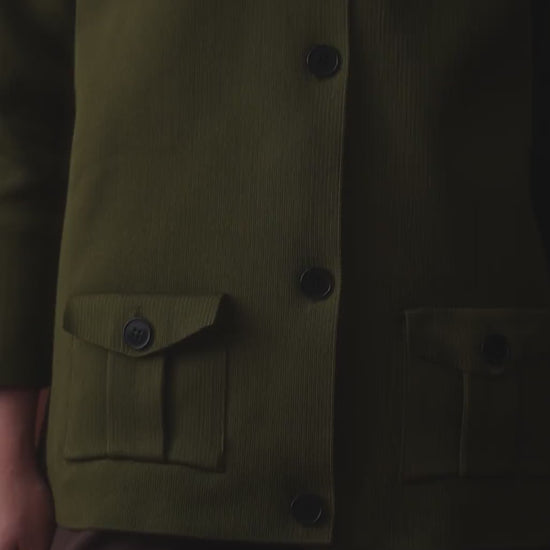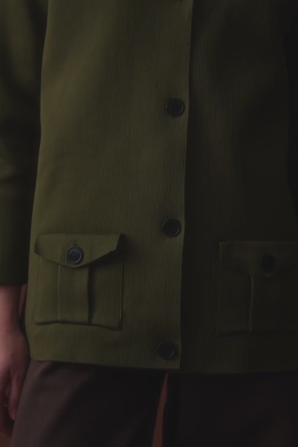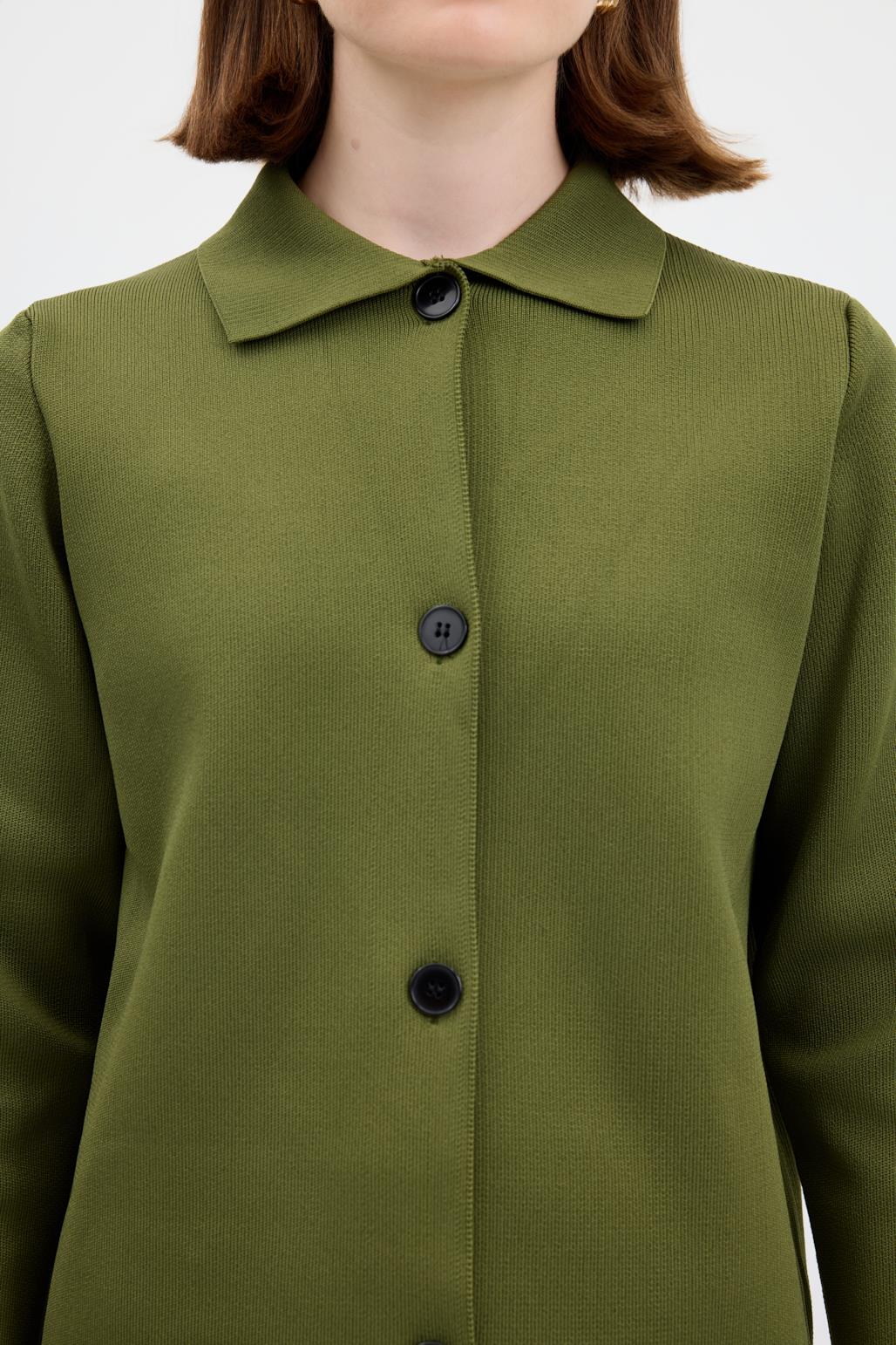 Düz Renk Cepli Triko Hırka Yağ Yeşili