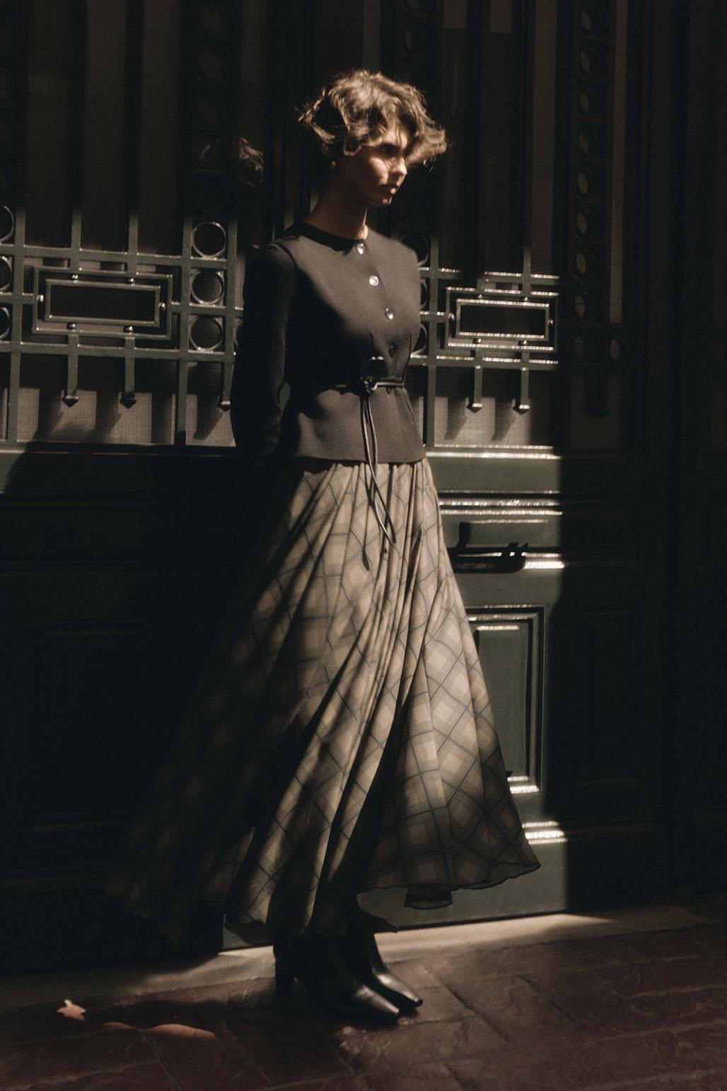 Ekose Desenli Uzun Kloş Etek Kahve, desenli dokulu şifon kumaşı ve kırışık yüzeyiyle hafif ve hareketli bir duruş sunar. Yüksek bel kesimi ve parça detaylı kloş formu eteğe zarif bir siluet kazandırırken, astarlı yapısı konforlu kullanım sağlar. Yandan gizli fermuar kapaması temiz bir görünüm sunar. Günlük ve özenli kombinlerde rahatlıkla tercih edilebilir.