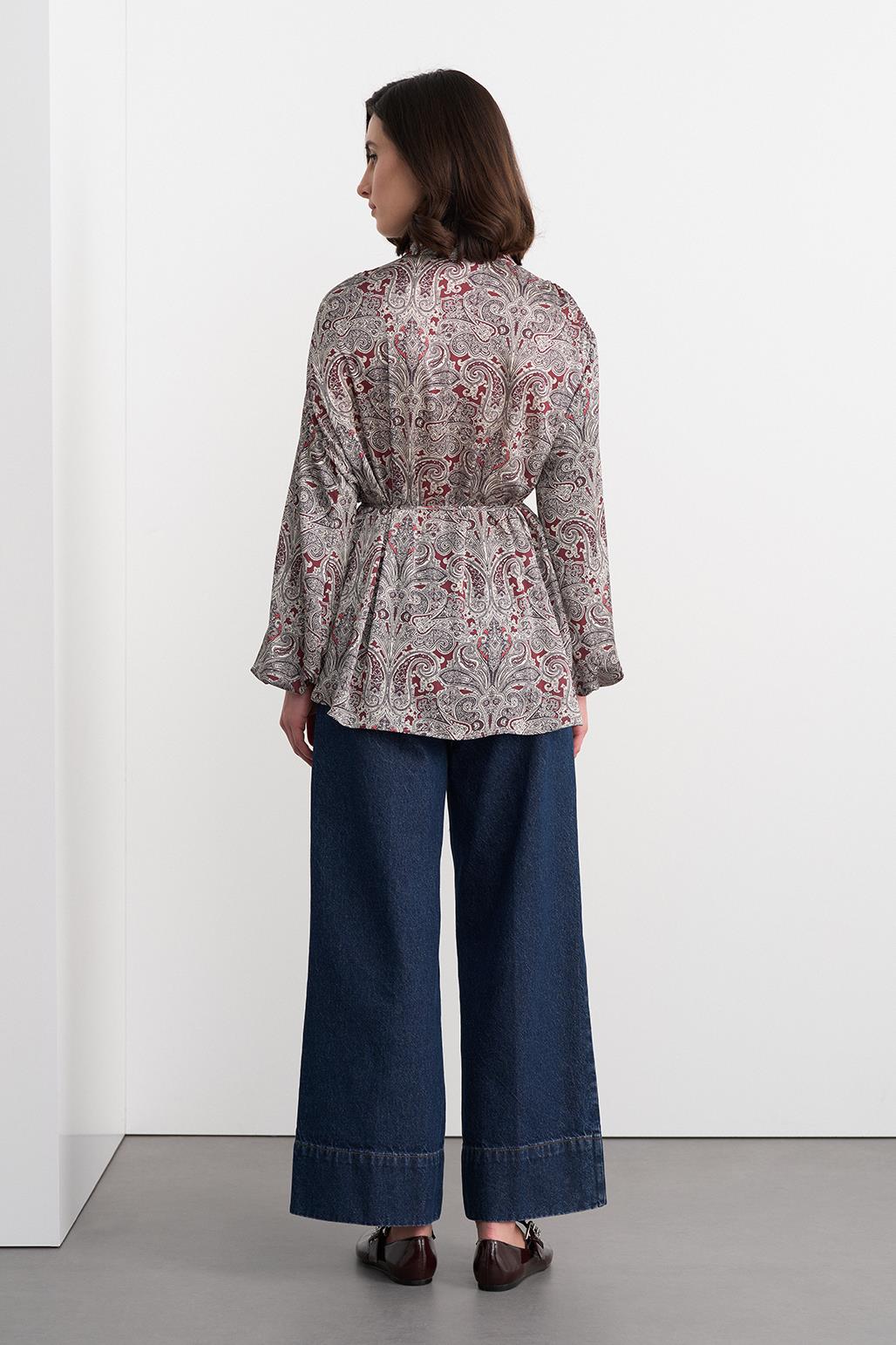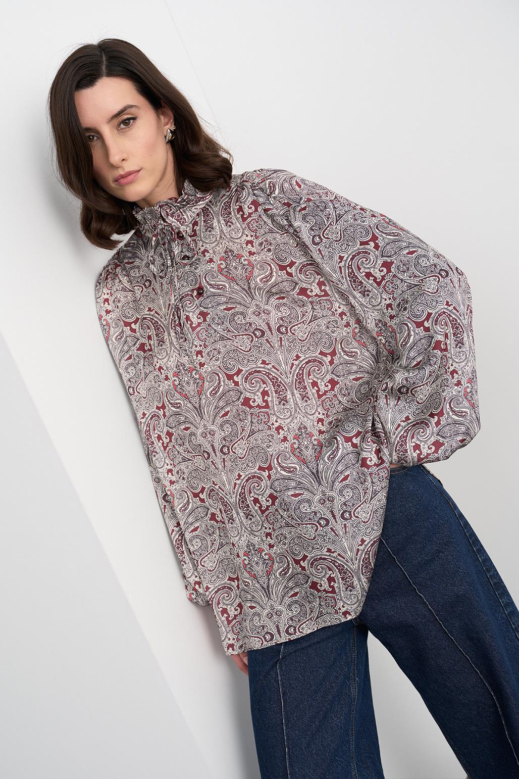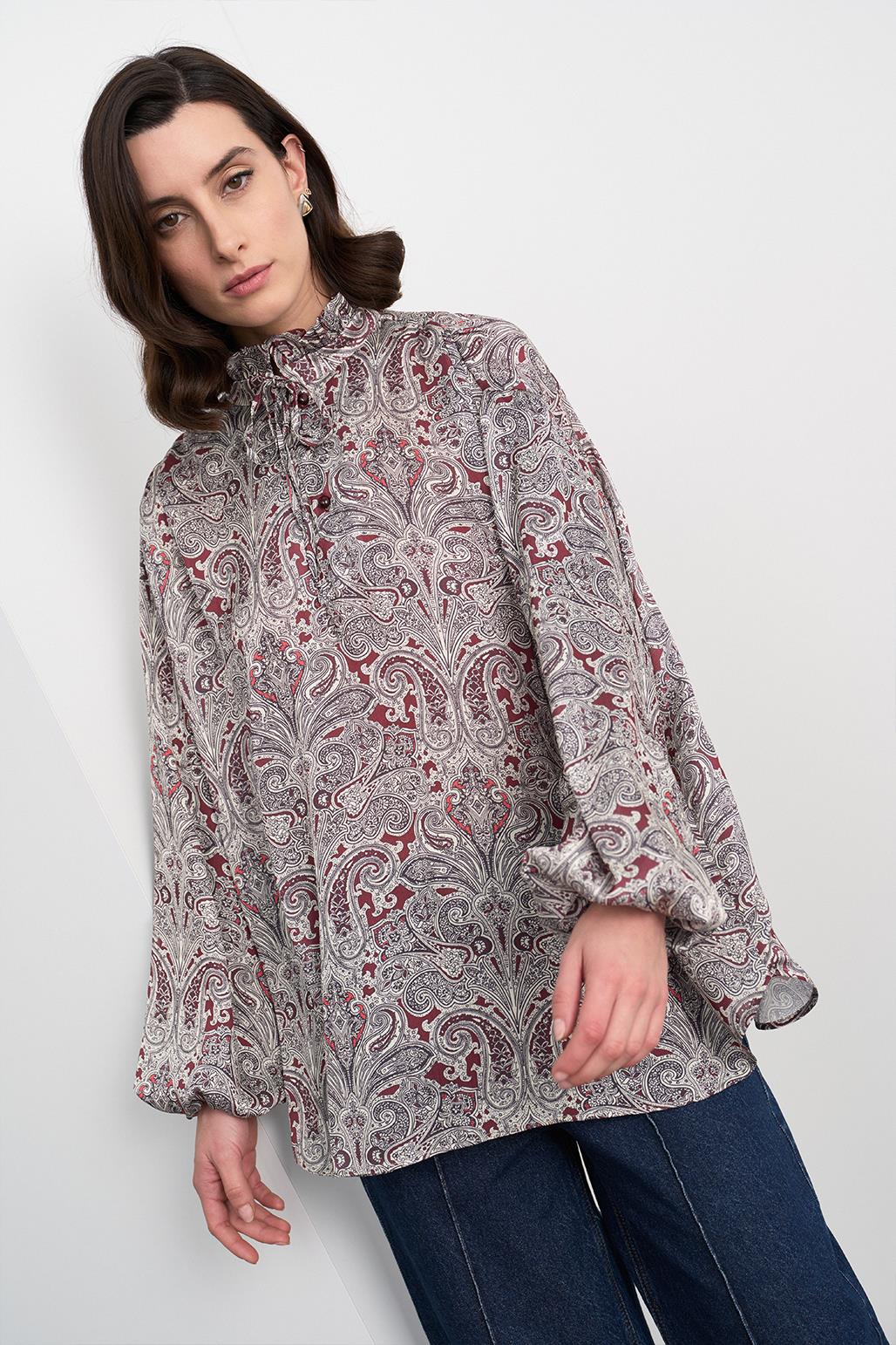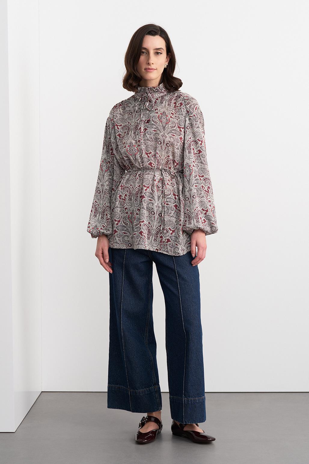 Emma desenli tunik bordo, dökümlü ve parlak görünümlü ipek hissiyatlı kumaşıyla zarif ve romantik bir stil sunar. Özel desenleri ve rahat kesimi, hem şıklık hem de konfor sağlar. Hakim yaka ve balon kol detaylarıyla hareket kazanan bu tunik, palazzo pantolonlarla modern bir tarz, dar kesim pantolonlarla ise daha klasik bir görünüm oluşturmanızı sağlar. Zamansız tasarımıyla dolabınızın hem günlük hem de özel anlar için vazgeçilmez parçalarından biri olacak!