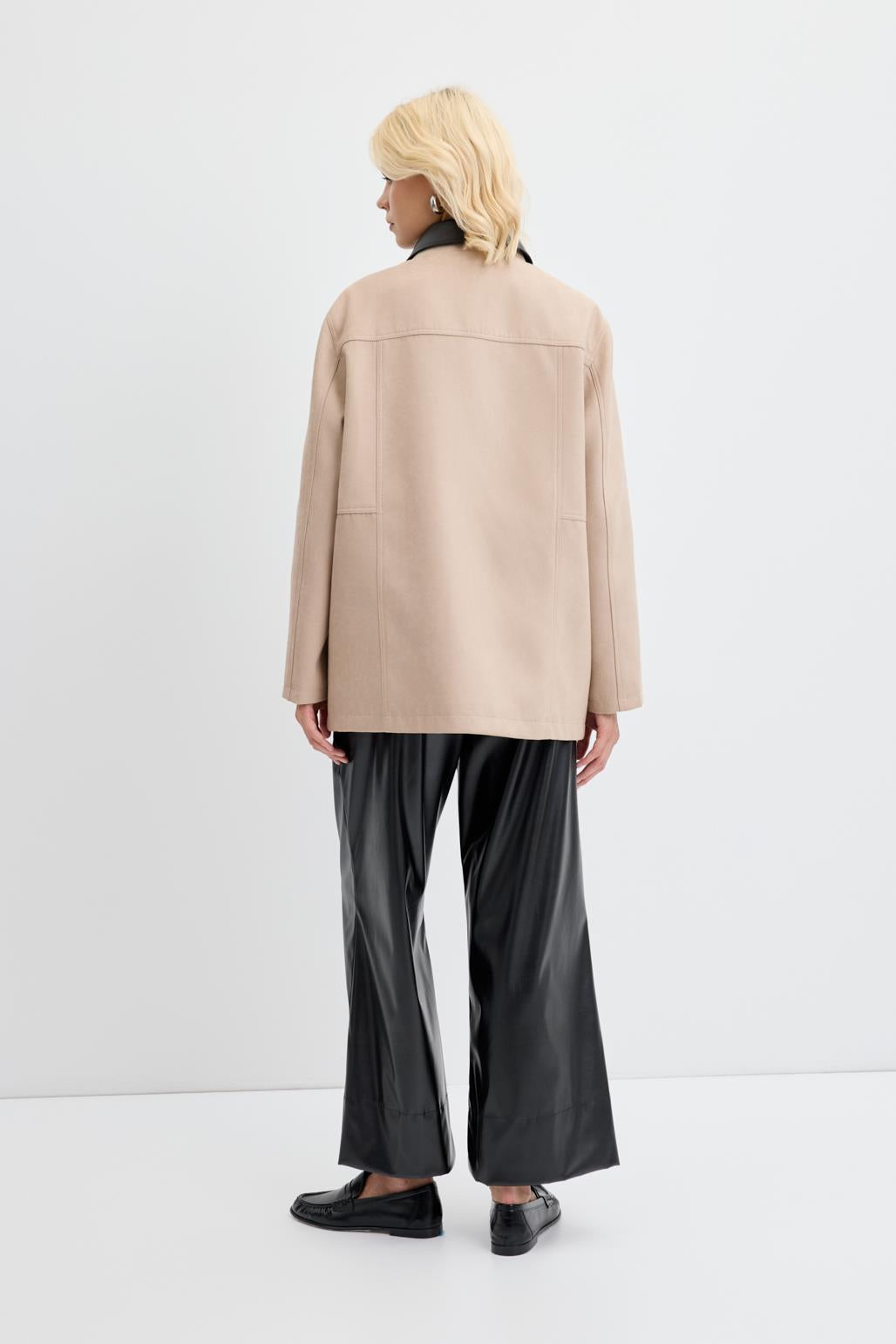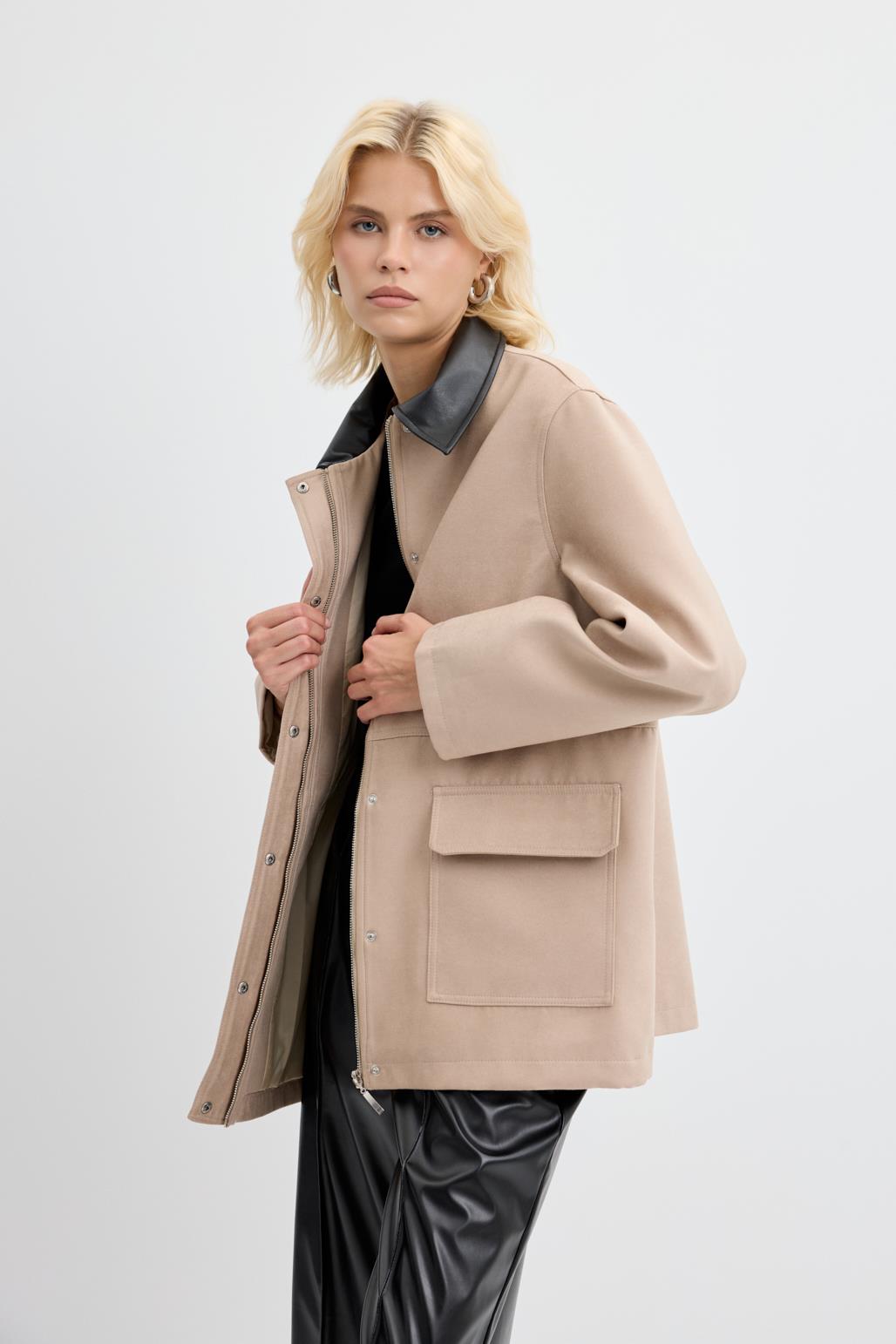 Fermuarlı Cepli Deri Yakalı Süet Ceket Vizon