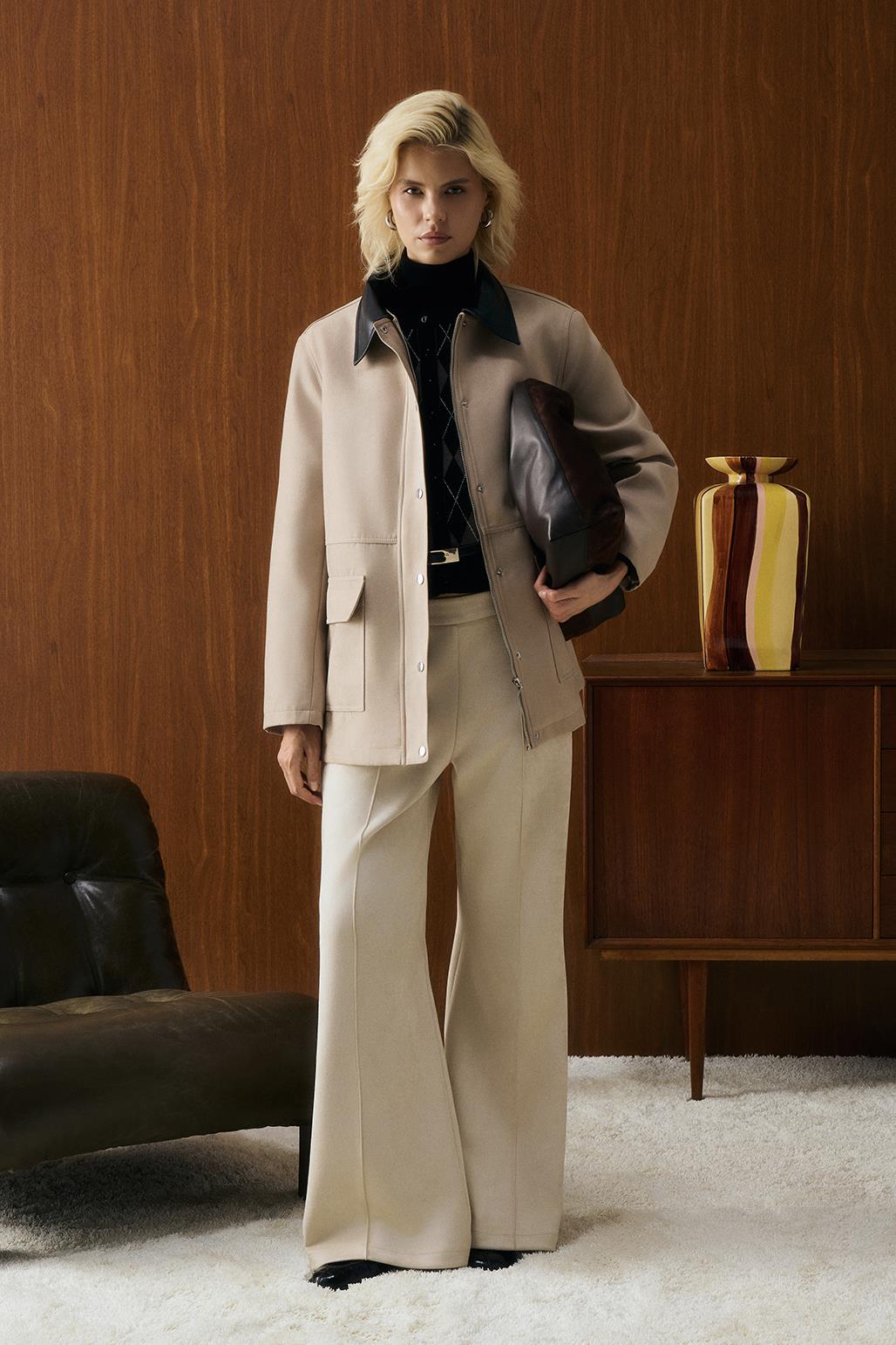 Fermuarlı Cepli Deri Yakalı Süet Ceket Vizon, klasik duruşunu modern detaylarla ön plana çıkarıyor. Süet görünümlü %100 PS kumaşı ve kontrast deri yakası, tasarıma hem dokulu hem de karakterli bir hava katıyor. Astarlı yapısı serin havalarda sıcak tutarken, gizli fermuar ve çıtçıt kapama detayıyla sade ve şık bir görünüm sunuyor.