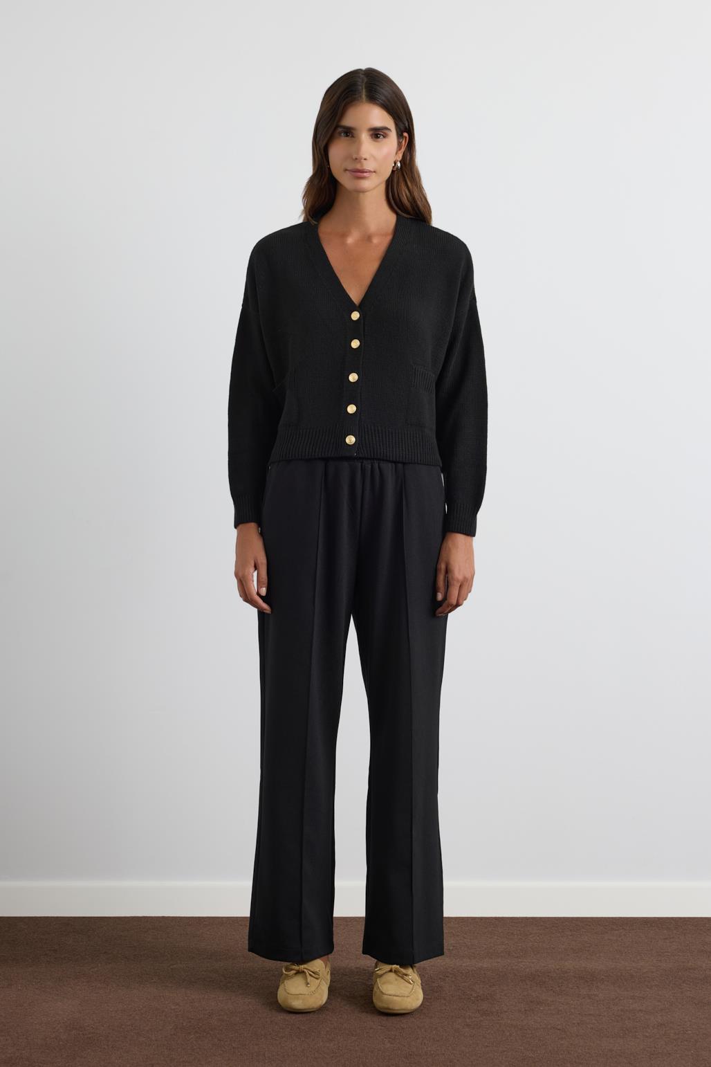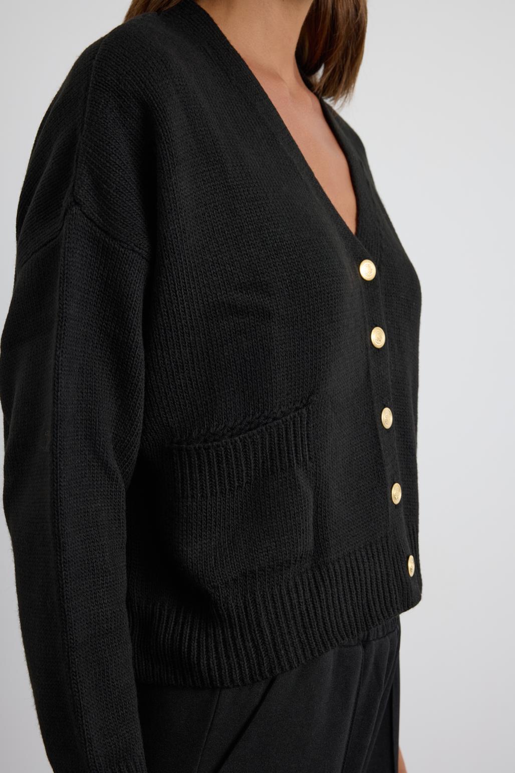 Gold Düğmeli Triko Hırka Siyah