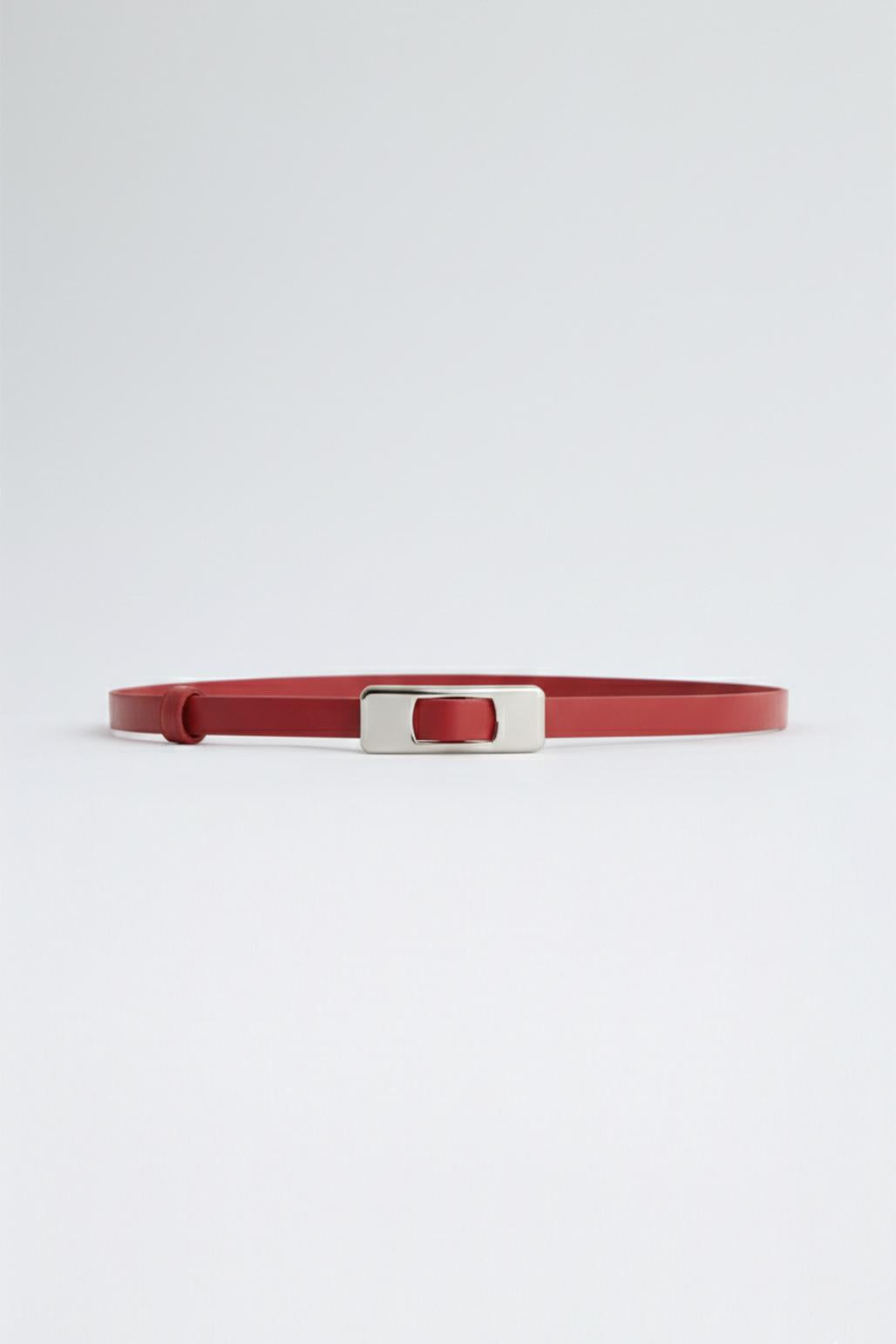 Gümüş Dikdörtgen Tokalı Kemer Kırmızı, suni deri dokusu ve gümüş renkli dikdörtgen metal tokasıyla kombinlerinize karakteristik bir hava katarak stilinizi güçlendirir. Ayarlanabilir yapısı, kemeri belinize tam oturacak şekilde kullanmanıza olanak sağlar.