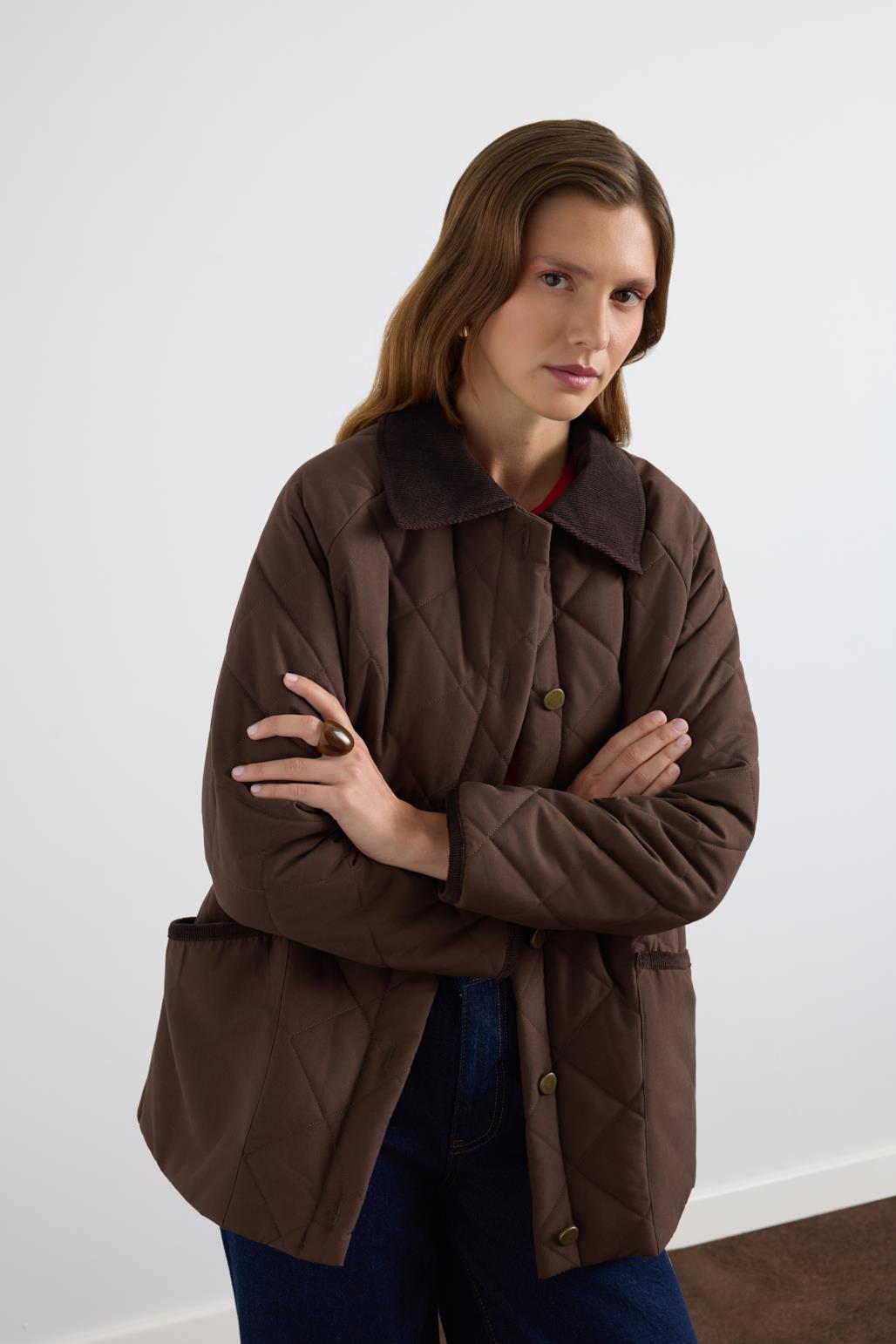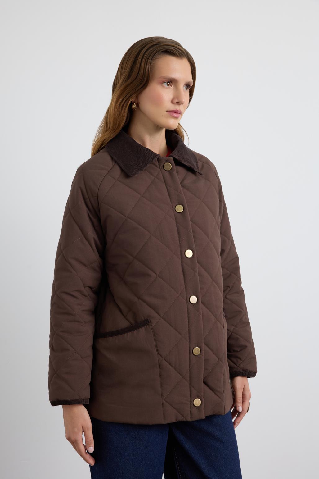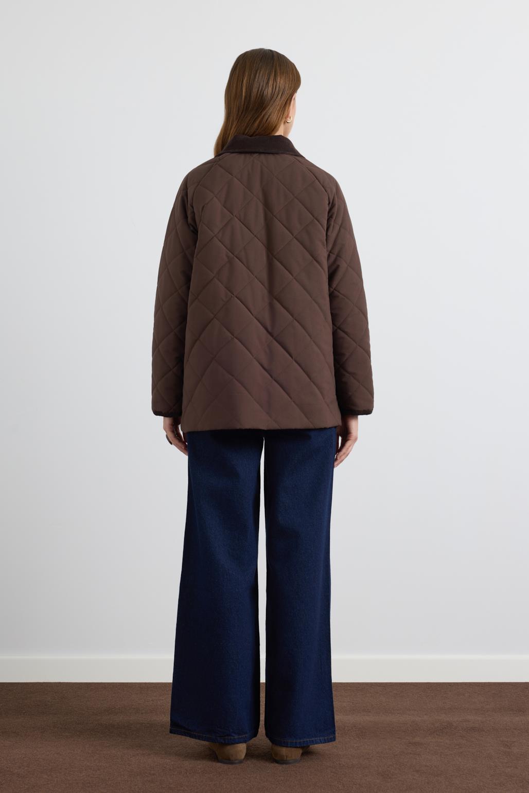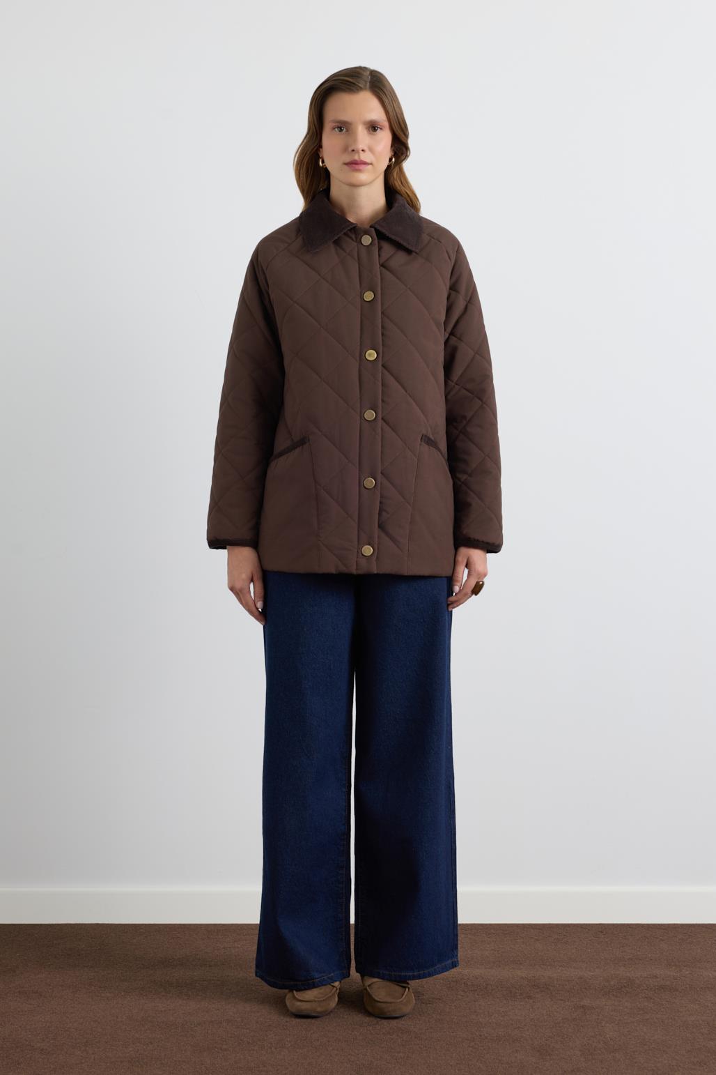 Kadife Yakalı Kapitone Ceket Mont Kahve