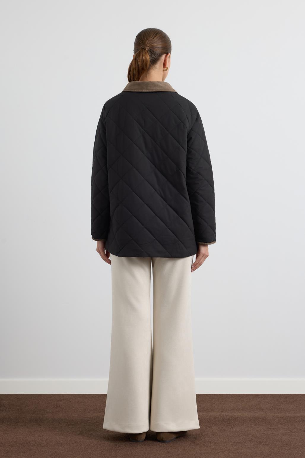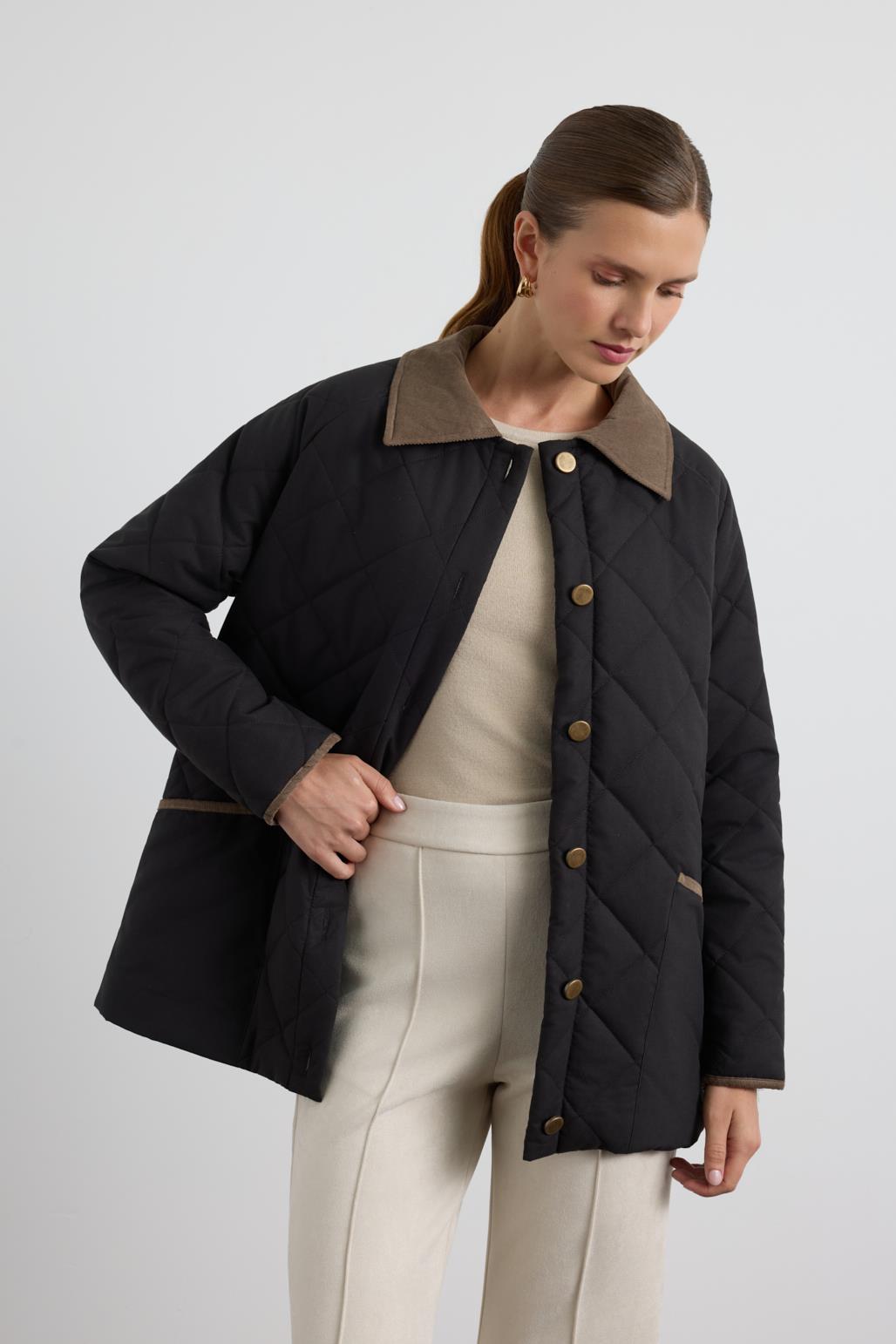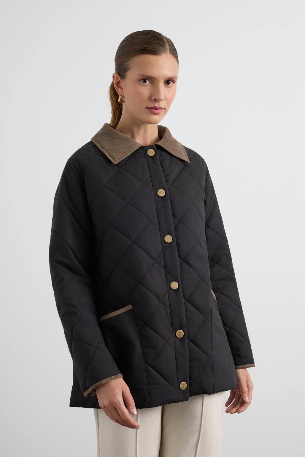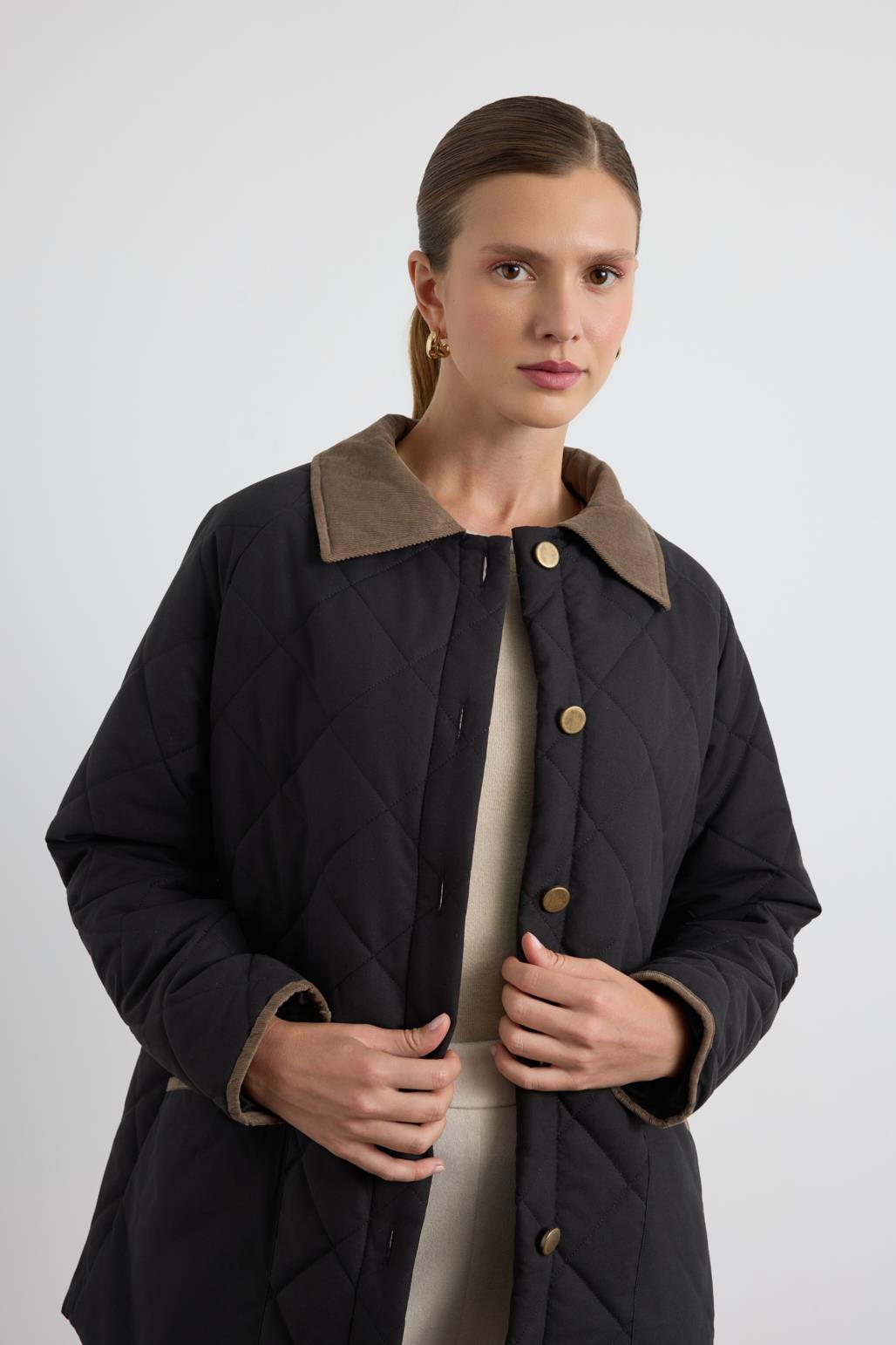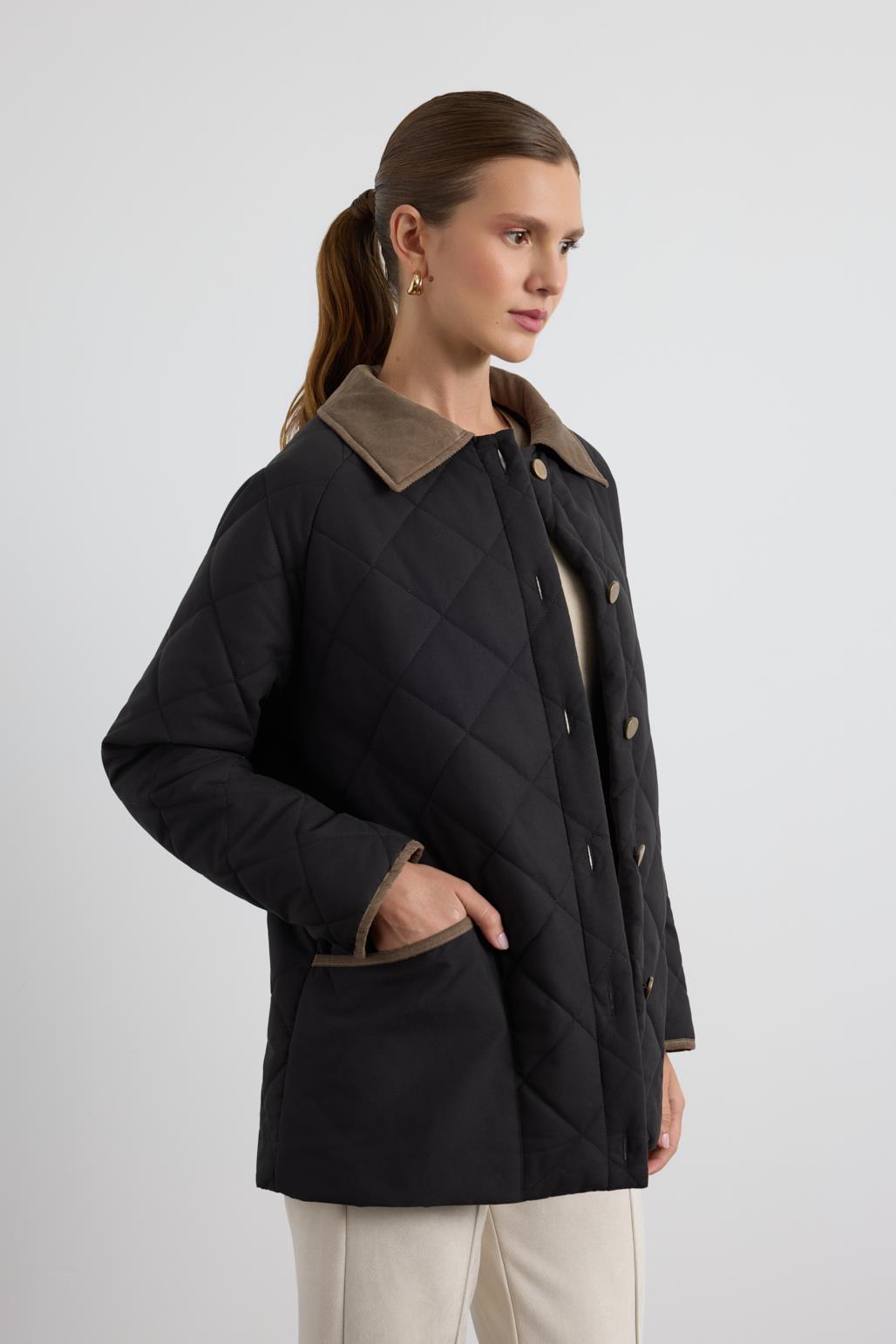 Kadife Yakalı Kapitone Ceket Mont Siyah