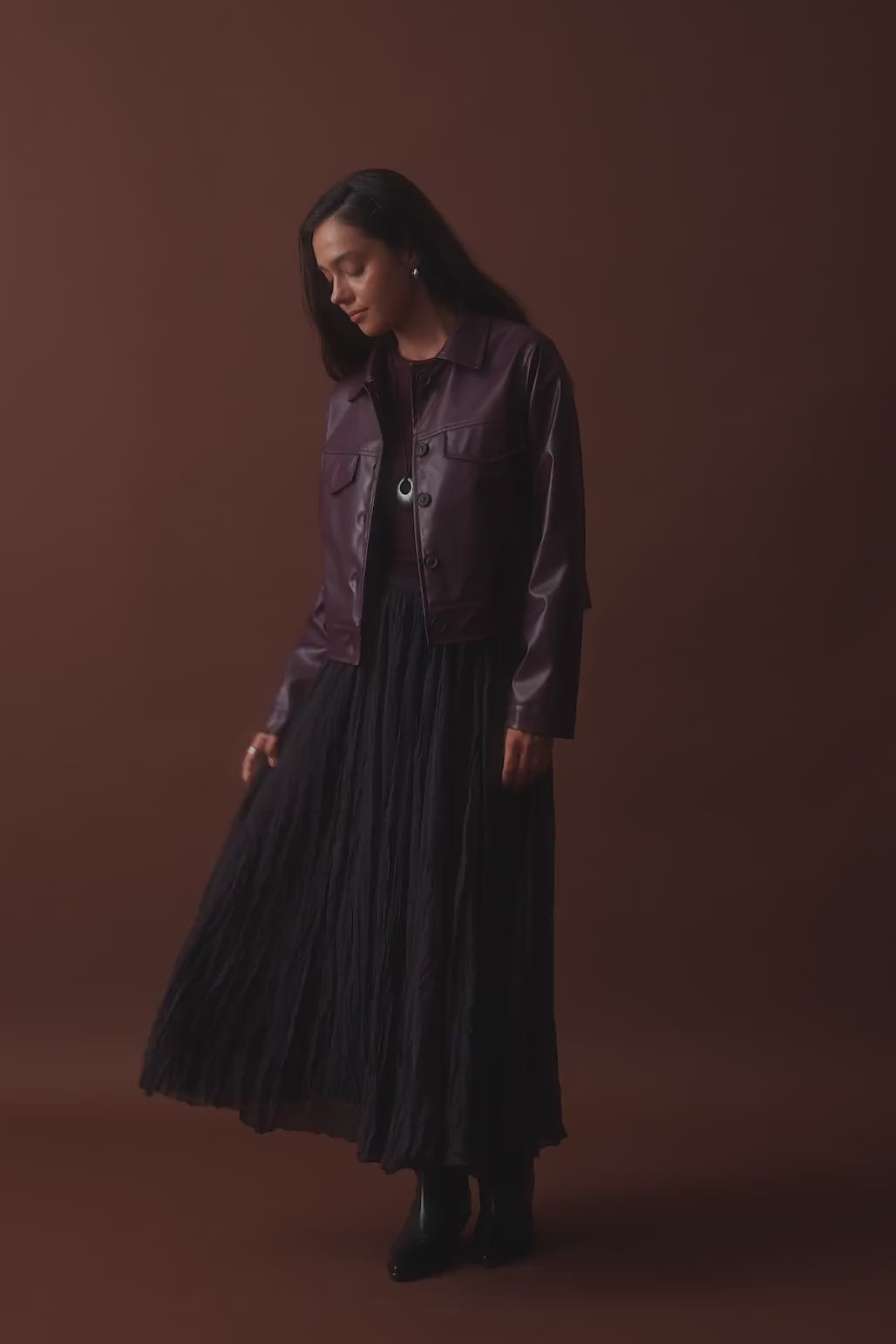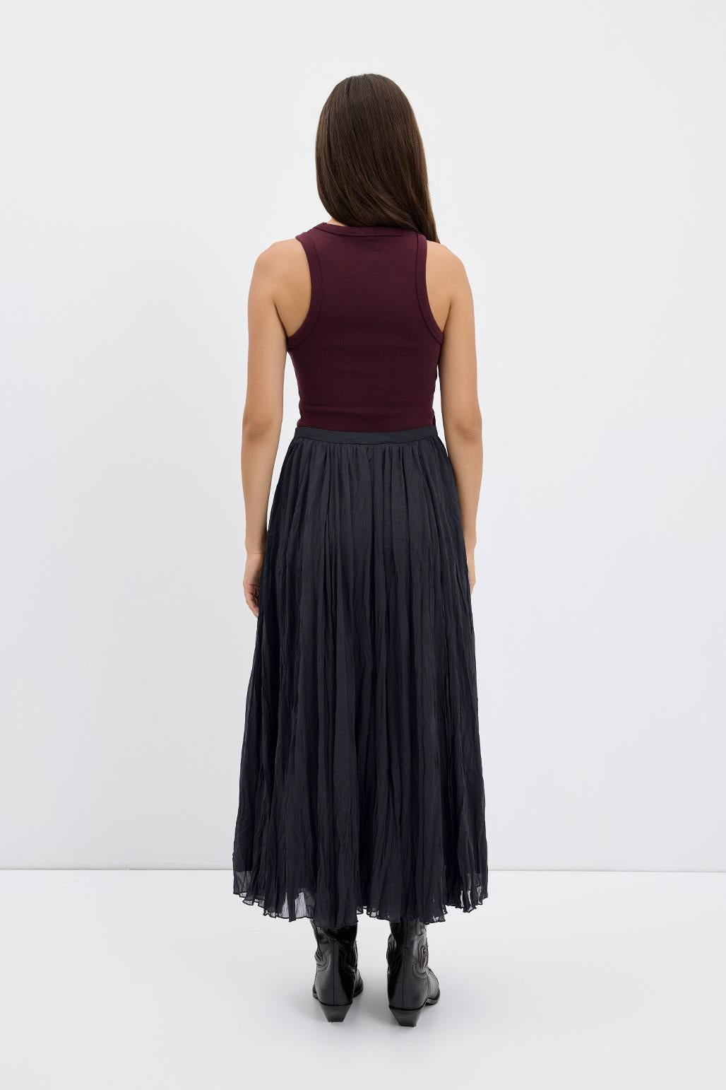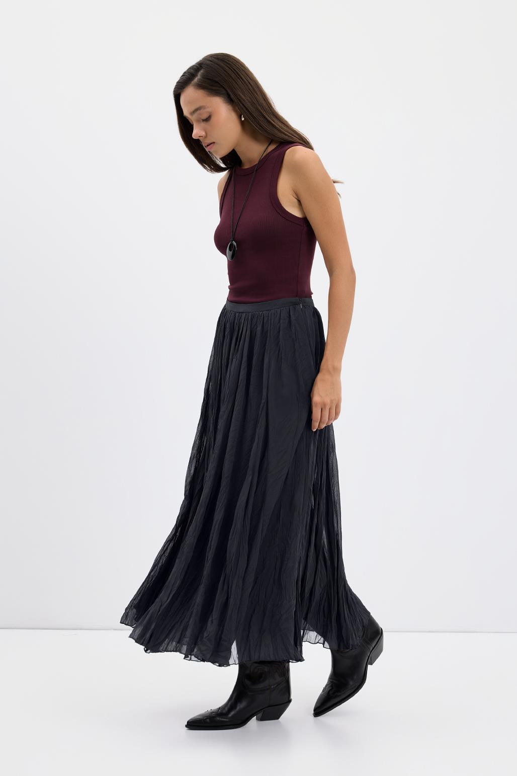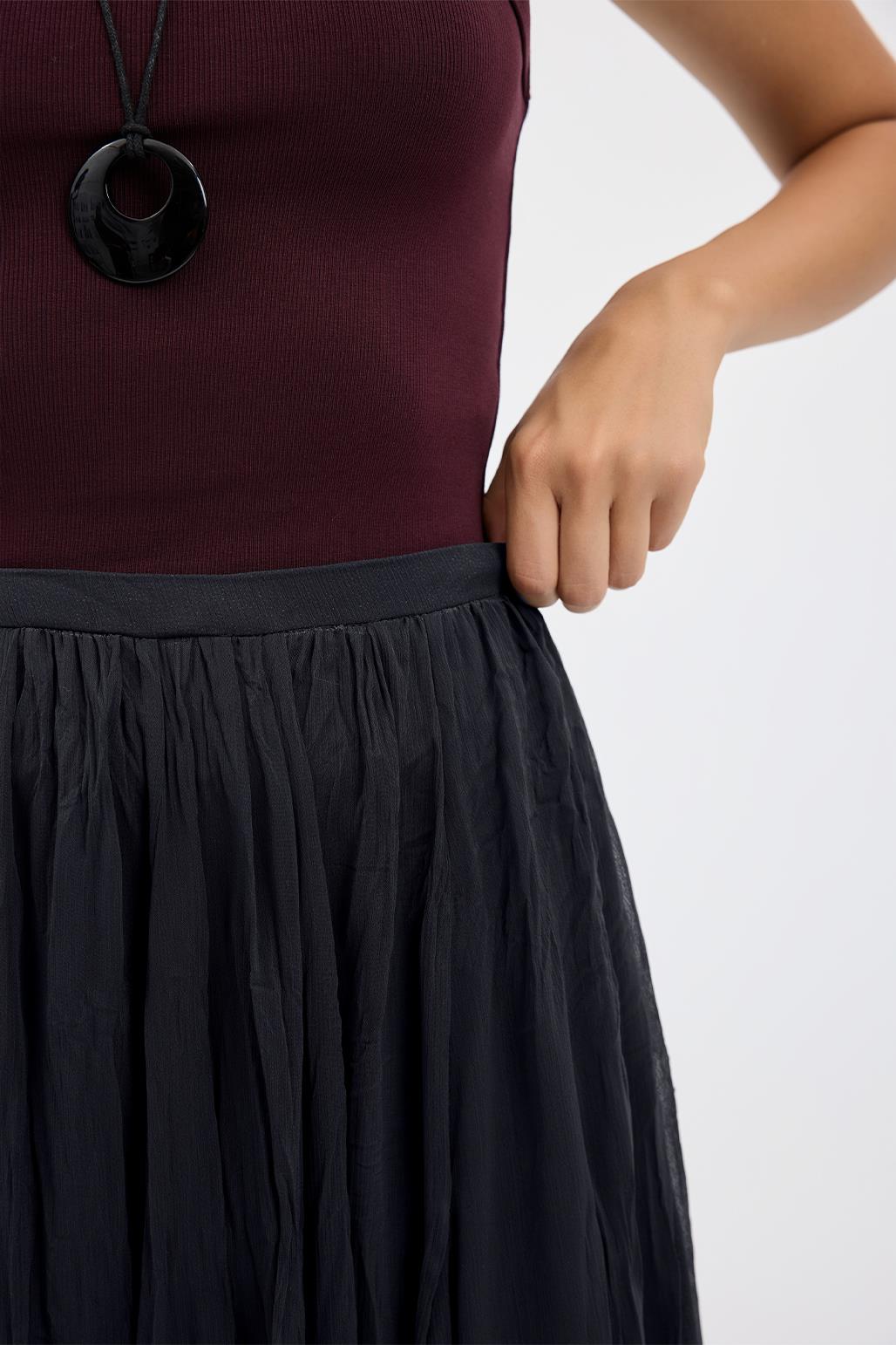Kırışık Görünümlü Uzun Kloş Etek Antrasit