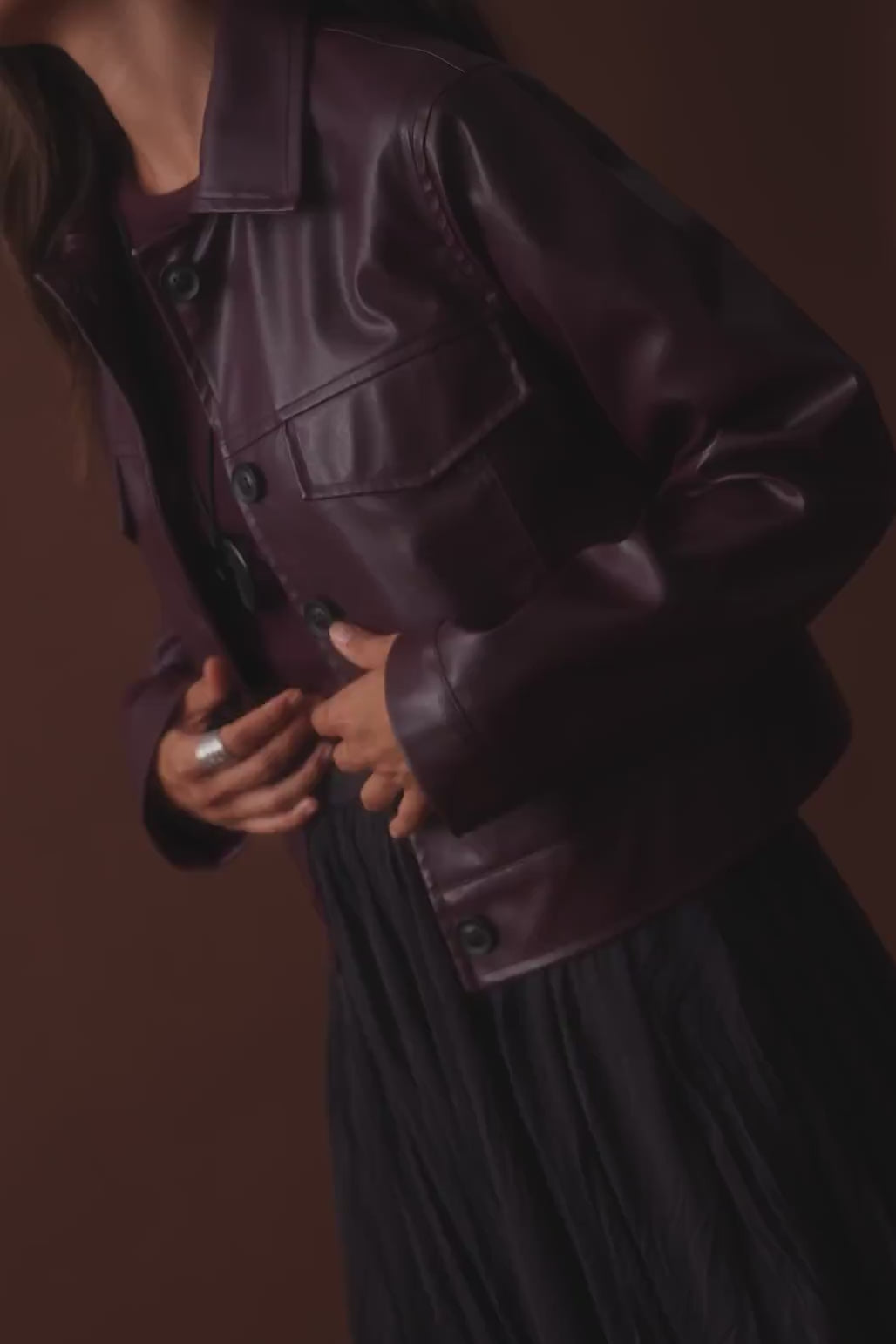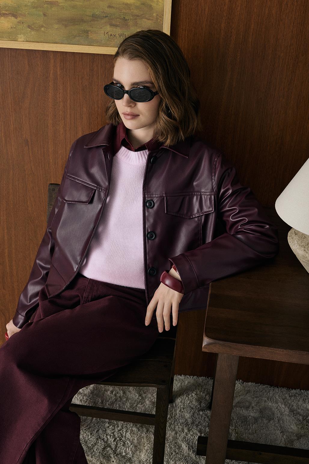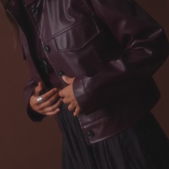 Kısa Suni Deri Ceket Bordo, düz kesimi ve klasik yakasıyla sade bir görünüm sunar. Suni deri kumaşı modele modern bir dokunuş katarken, önden kesikli formu ve bilezik manşetli kol detayı hareket kazandırır. Kapaklı cepleri işlevsellik sağlarken, astarlı yapısı mevsim geçişlerinde konfor sunar. Pratik ve zamansız bir dış giyim seçeneği olarak dolabınızda kolaylıkla yerini alır.