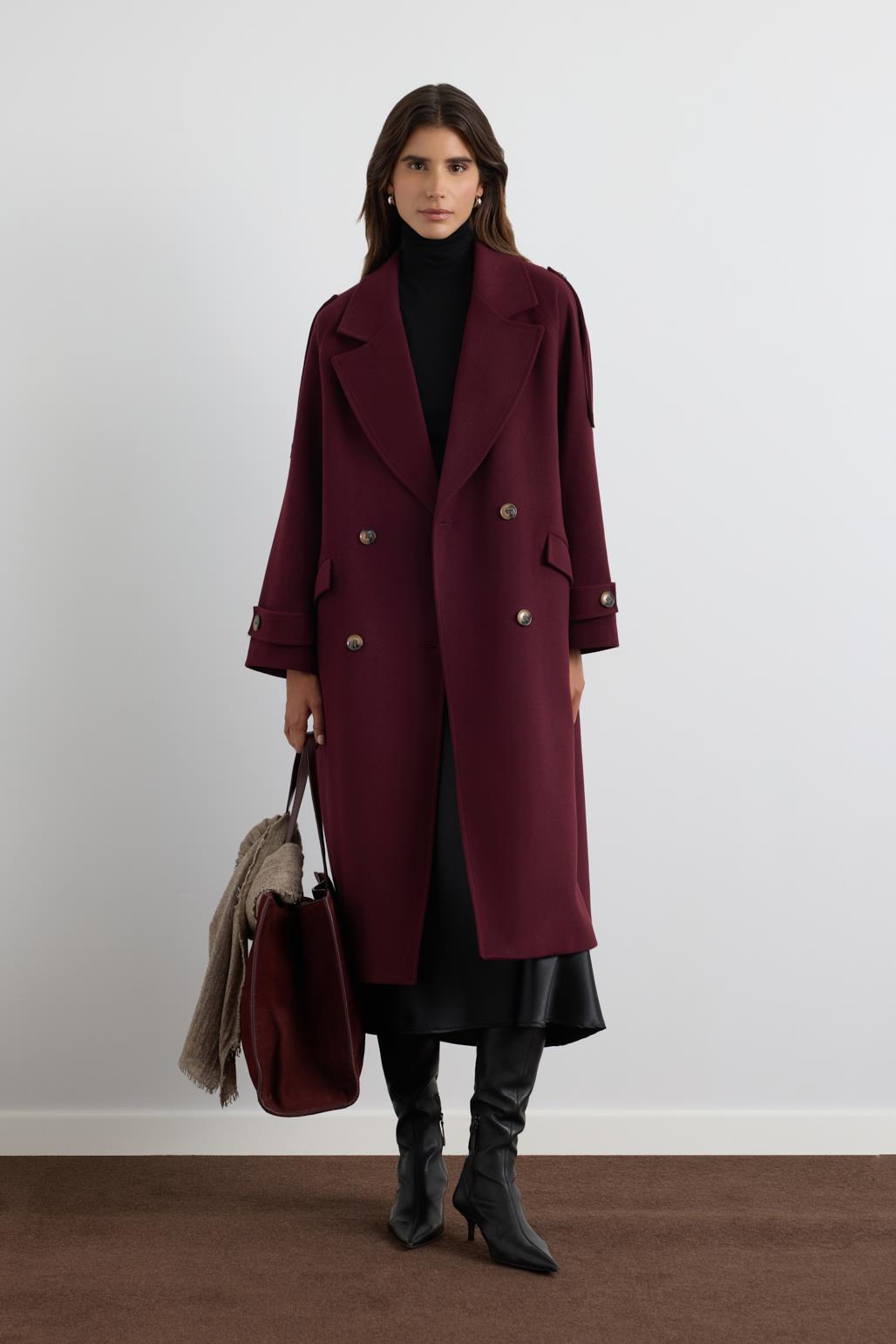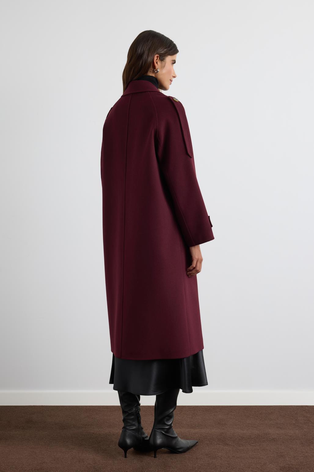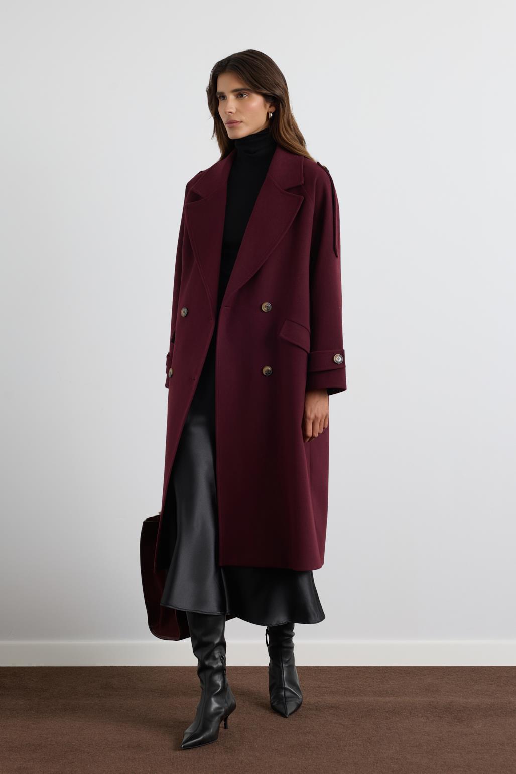 Kruvaze Yaka Apolet Detaylı Kaşe Kaban Bordo