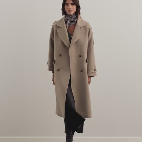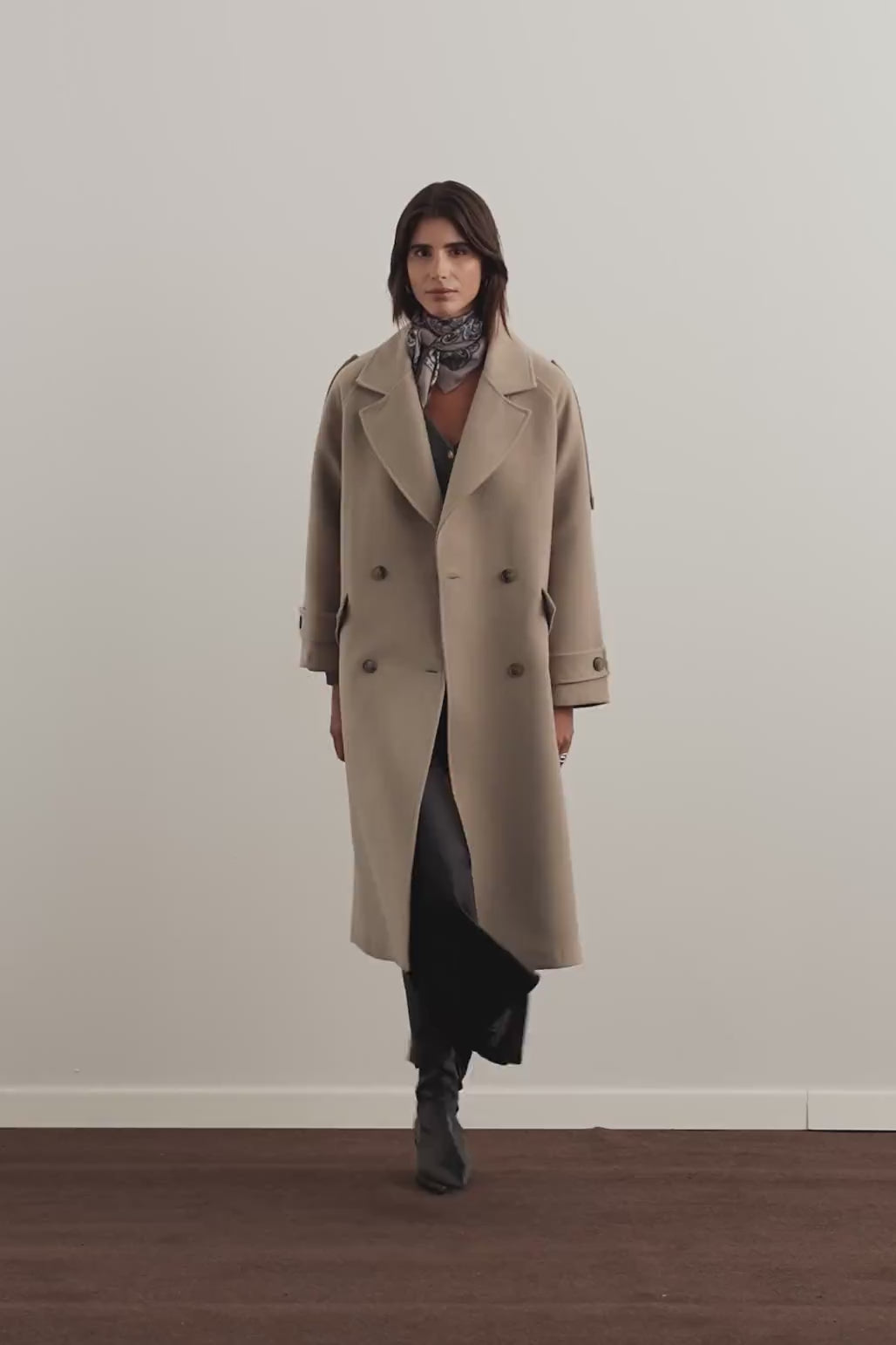 Kruvaze Yaka Apolet Detaylı Kaşe Kaban Vizon