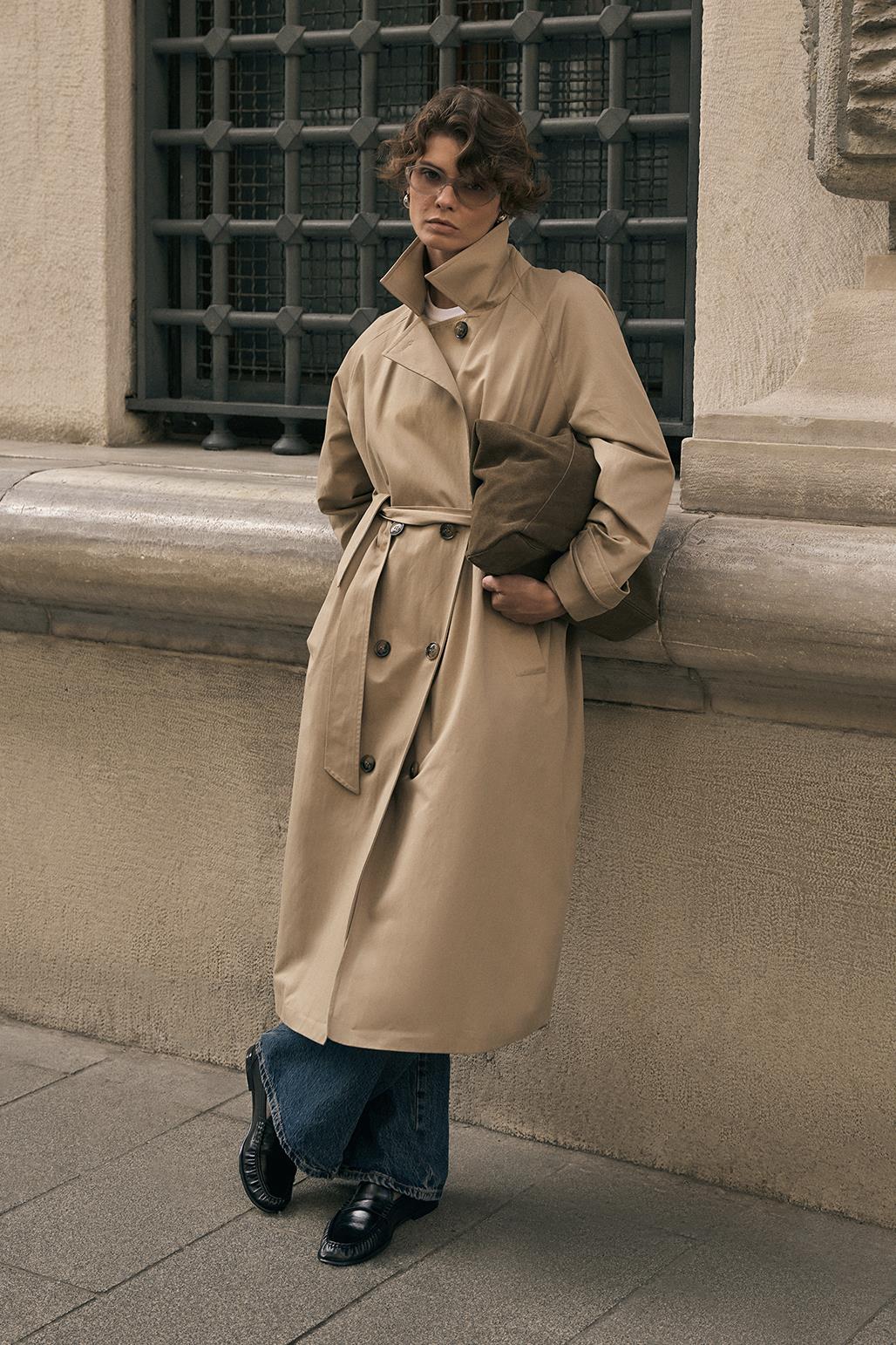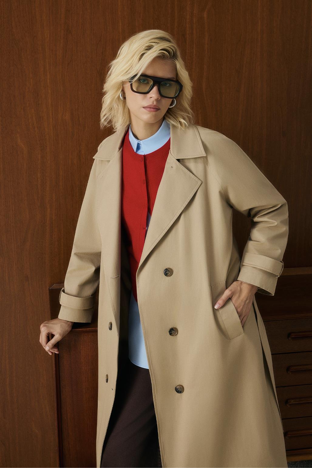 Kruvaze Yaka Astarlı Uzun Trençkot Taş, pamuk karışımlı gabardin kumaştan üretilmiştir. Astarlı yapısı mevsim geçişlerinde konfor sunarken, katlama yakası ve kendi kumaşından seyyar kemeriyle klasik trençkot görünümünü tamamlar. Kruvaze kapama ve düğme detayları sade bir şıklık sağlarken, arka etek ucundaki yırtmaç hareket kolaylığı sunar. Manşetlerdeki apolet düğme detayı ise tasarıma işlevsel bir dokunuş katar. Uzun ve rahat kesimiyle günlük ya da şehir stiline kolayca uyum sağlar.