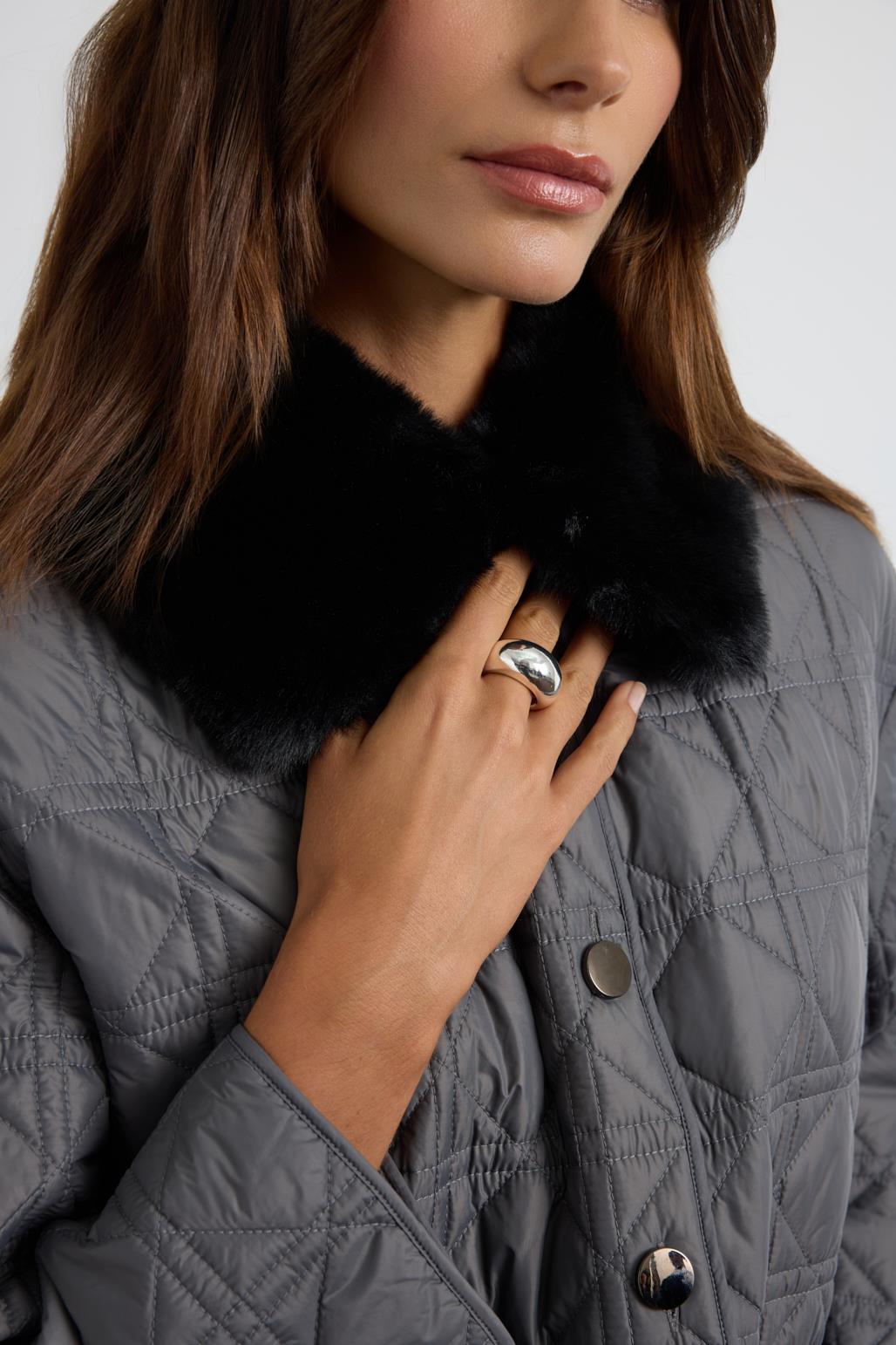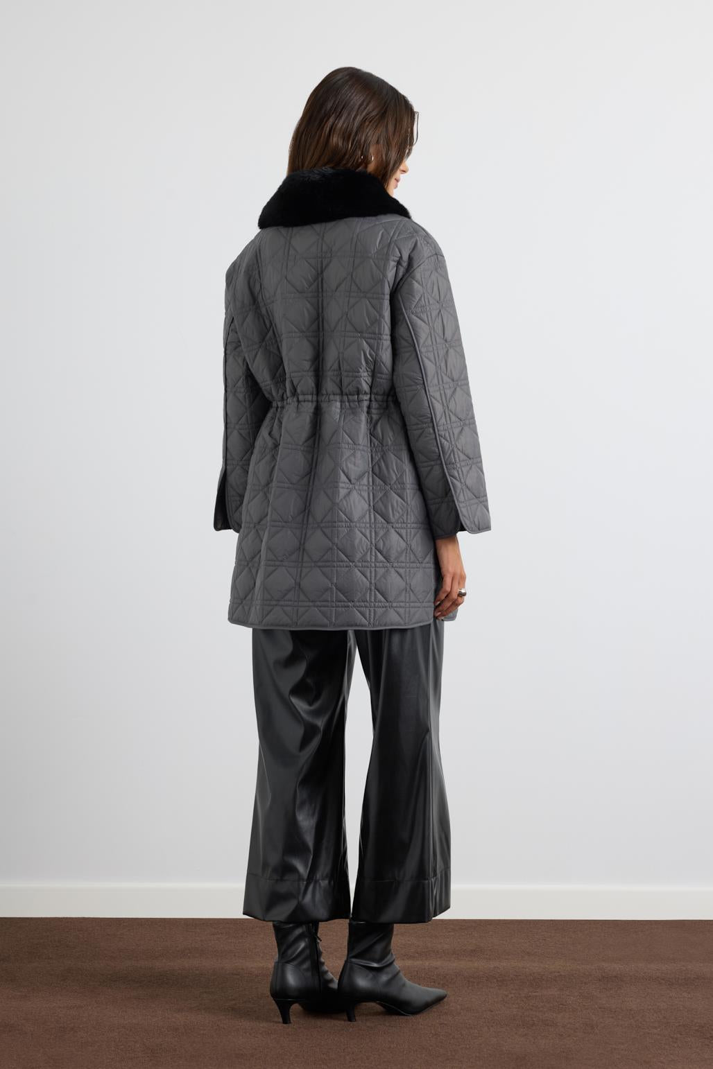 Kürk Yakalı Cepli Kapitone Mont Gri
