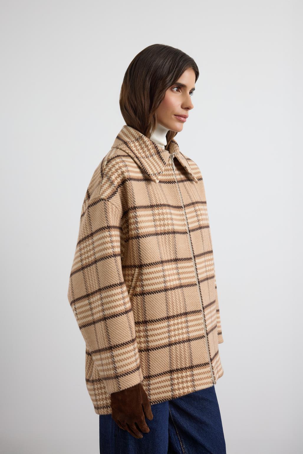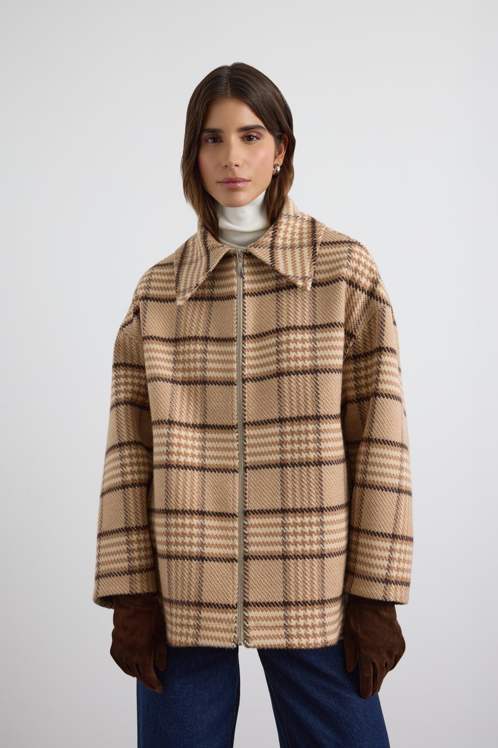 Kürk Yakalı Ekose Desen Bomber Ceket Camel, yumuşak viskon kaşe kumaştan üretilmiştir. Takma melanj suni kürk yakası cekete hem sıcaklık hem de şık bir dokunuş katar. Önü fermuarlı tasarımı kullanım kolaylığı sağlarken, triko ekose deseni modern bir stil oluşturur.