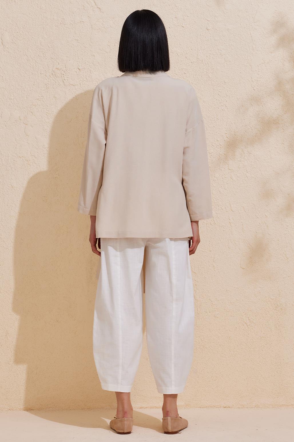 %57 Cotton %43 Viscon ürünün kullanım ömrünü uzatmak adına çamaşır makinasında düşük ısıda yıkanabilir.Sererek kurutunuz.Düşük ısıda tersten ütülenebilir.El ile ölçümlerde 2-3 cm değişiklik gösterebilir.