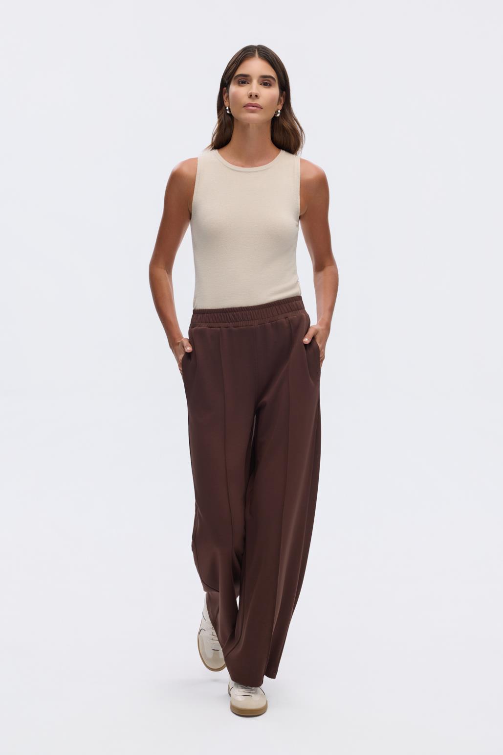 Modal Örme Bol Kesim Pantolon Kahve, esnek ve yumuşak dokulu kumaşı sayesinde rahat ve konforlu olmanızı sağlar. Yüksek bel ve önden dikiş detayı ile fit, toparlayıcı bir görünüm vadeder.