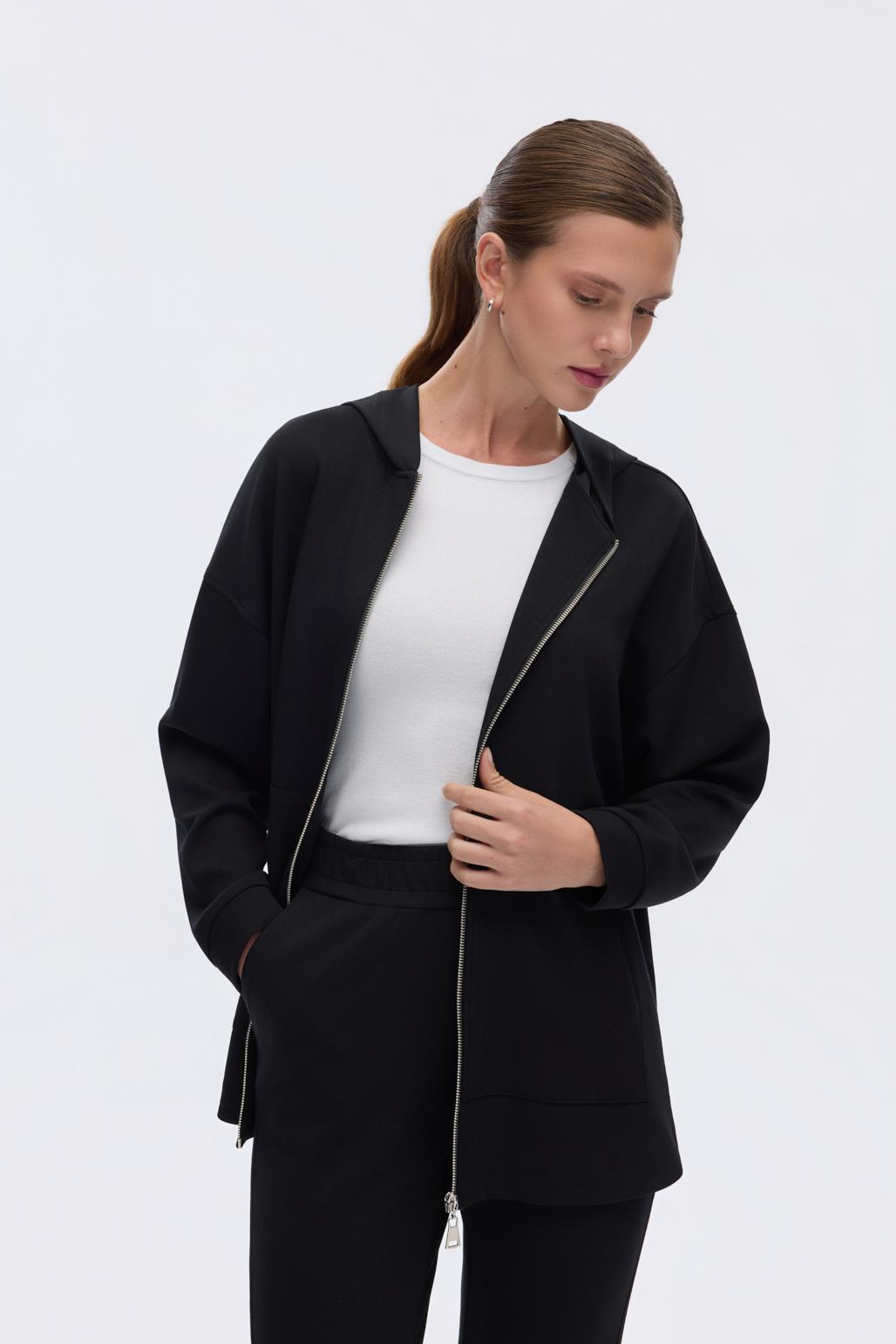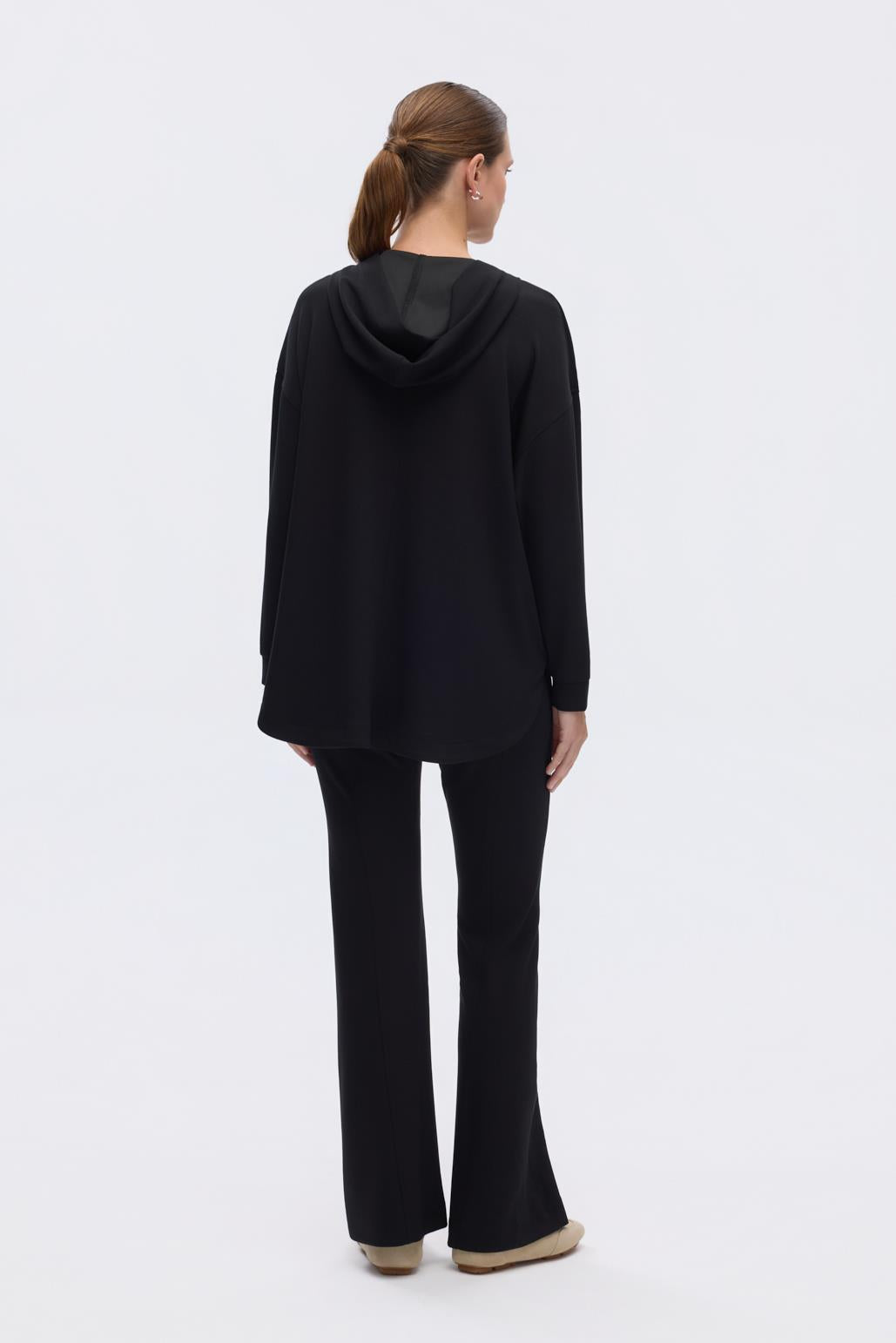 Modal Örme Kapüşonlu Hırka Siyah, her an nefes alan kumaşıyla konforu hissettirirken, kombinlerinize şıklık katmayı ihmal etmez. İster spor ayakkabılarla hafta sonu rahatlığına kavuşun, ister şık parçalarla modern bir stil yaratın. Zamansız hırka, gardırobunuzun en güvenilir kurtarıcılarından biri olacak.