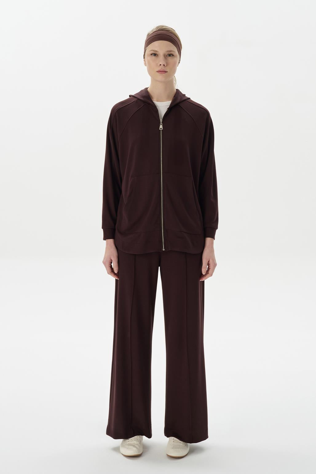 Modal örme kapüşonlu oversize hırka kahve, doğal dokusu ve geniş kesimiyle rahatlığın tanımını yeniden yapıyor. Kanguru cepleri ve fermuarlı kapanışı, pratik kullanım sunarken kapüşon detayıyla sportif bir hava katar. Oval kesim etek ucu ve reglan kol tasarımı, hareket özgürlüğünü ve şıklığı bir araya getirir. Jogger pantolonlarla günlük bir görünüm ya da maxi eteklerle modern bir stil yaratabilirsiniz. Her mevsim kurtarıcı bir parça olarak dolabınızda yerini alacak!