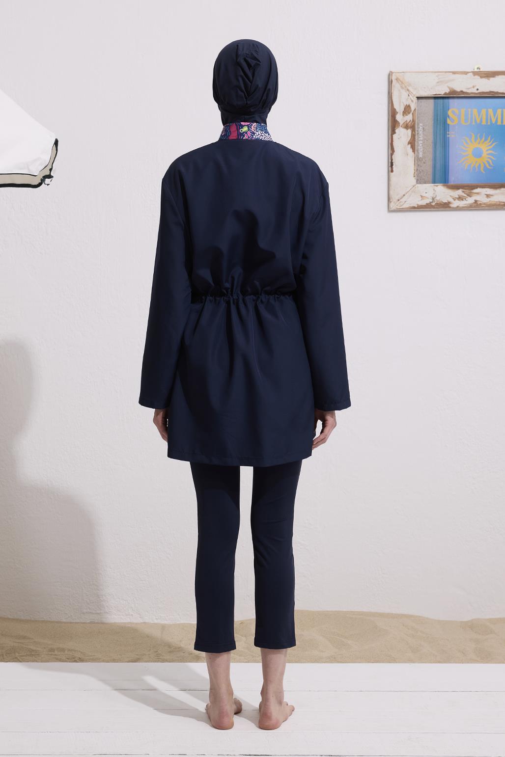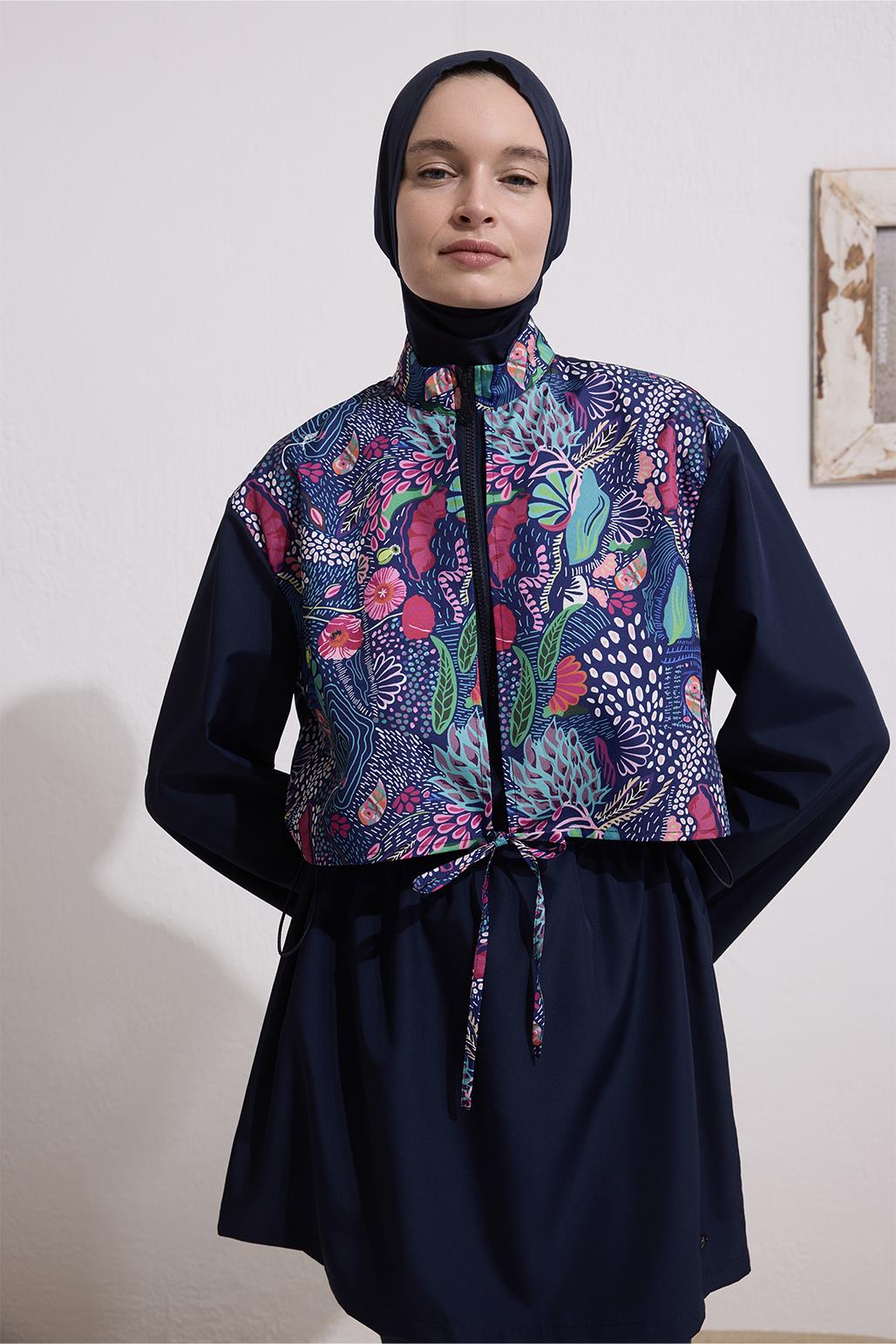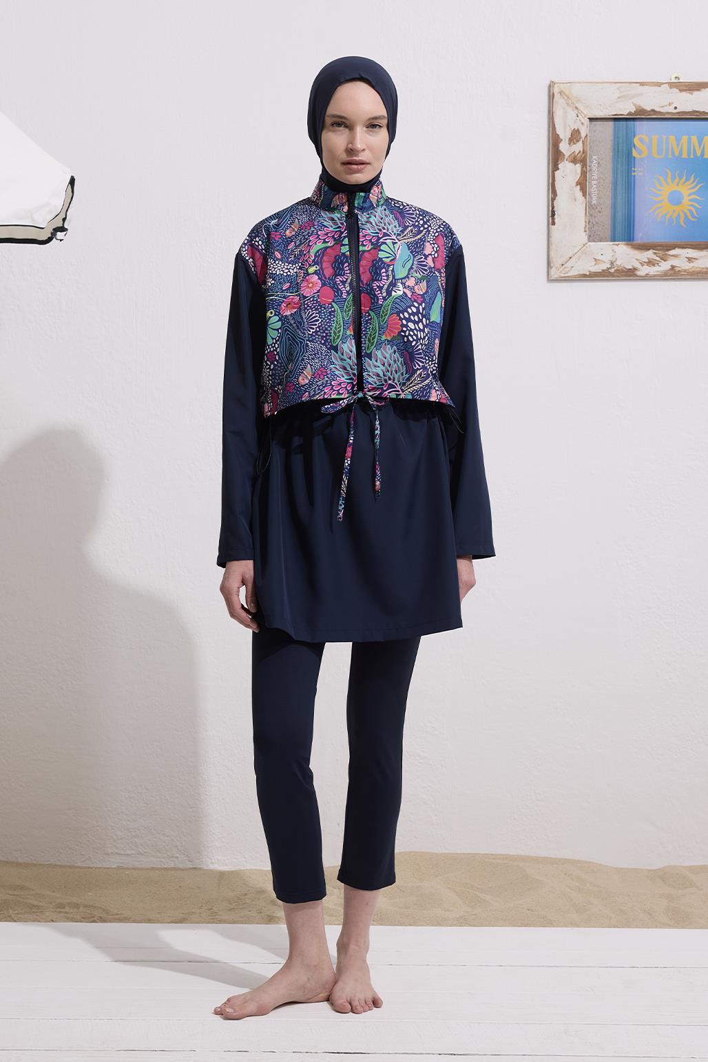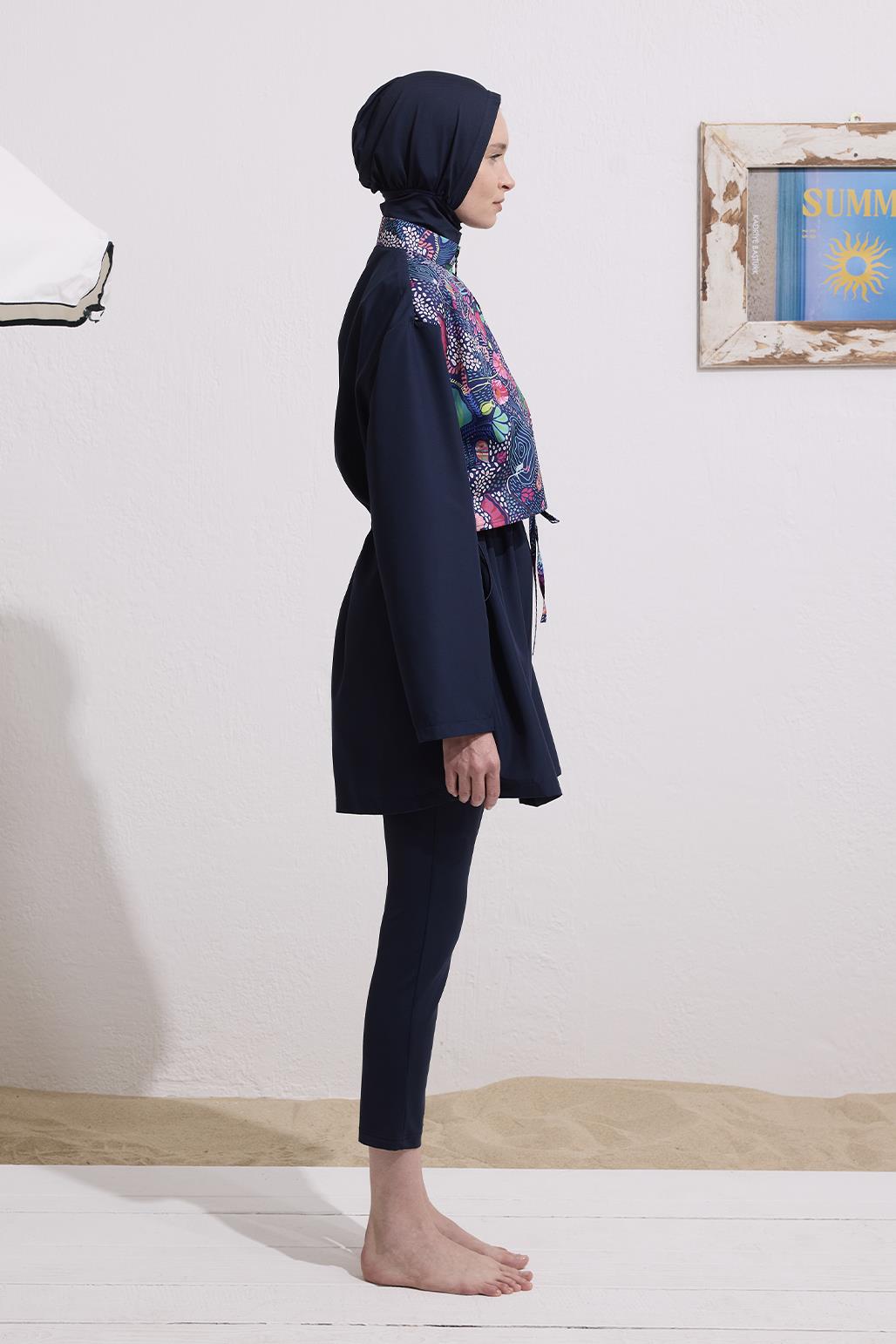 Paraşüt Desenli Bağlamalı Tesettür Mayo Takım Lacivert