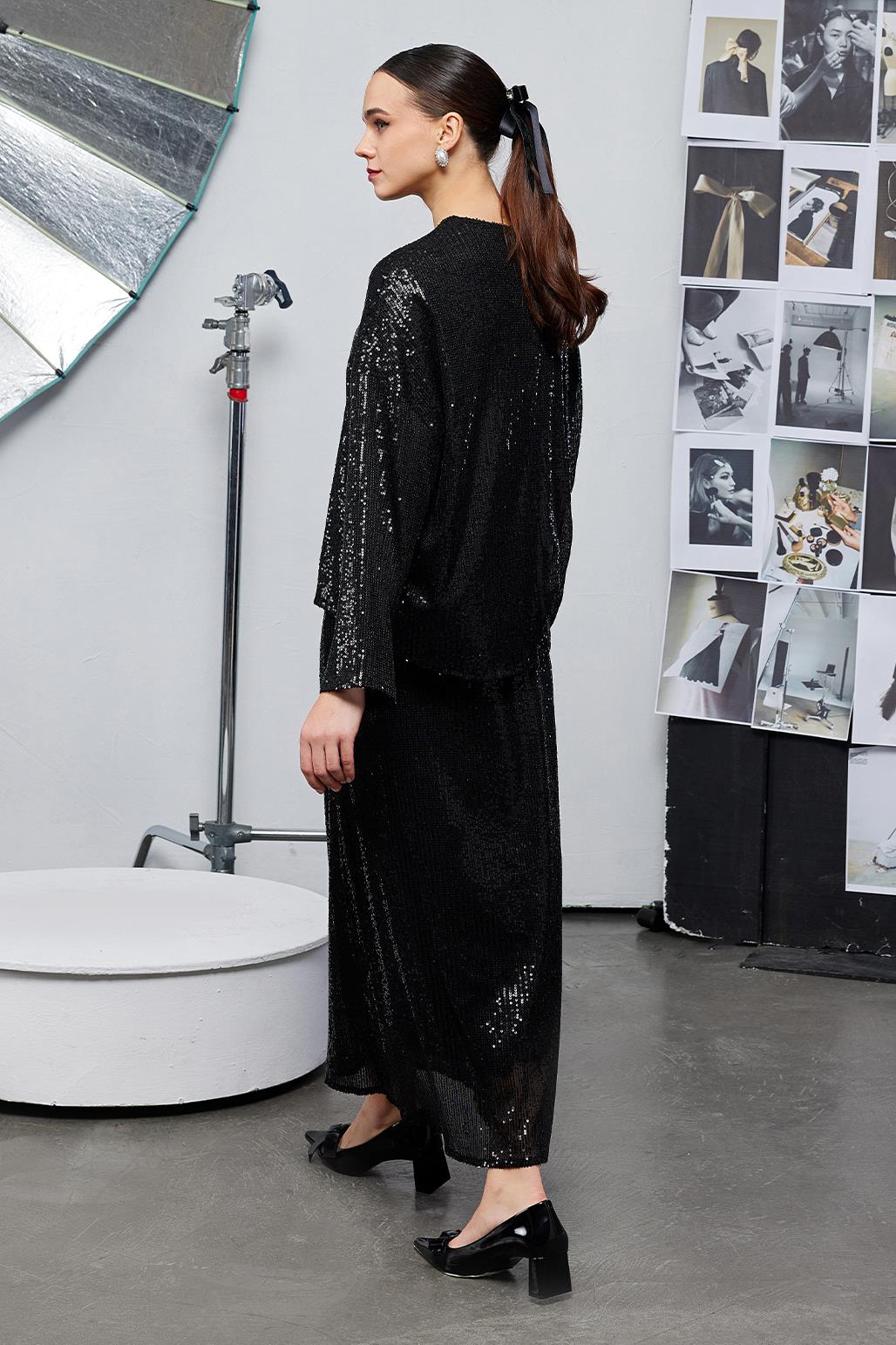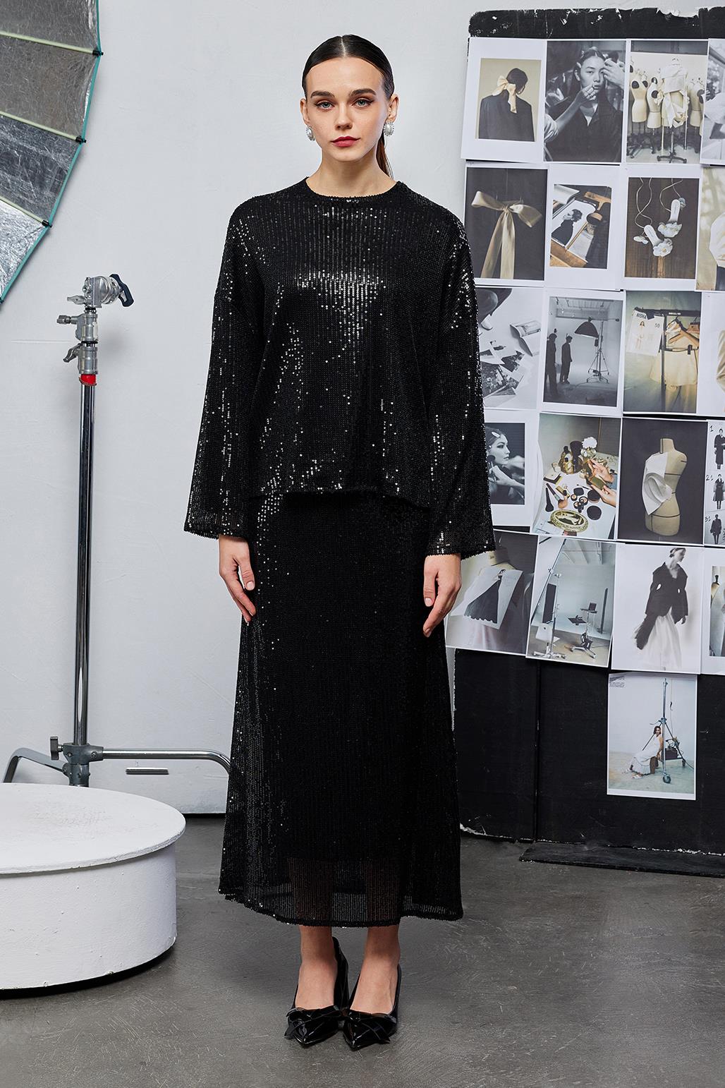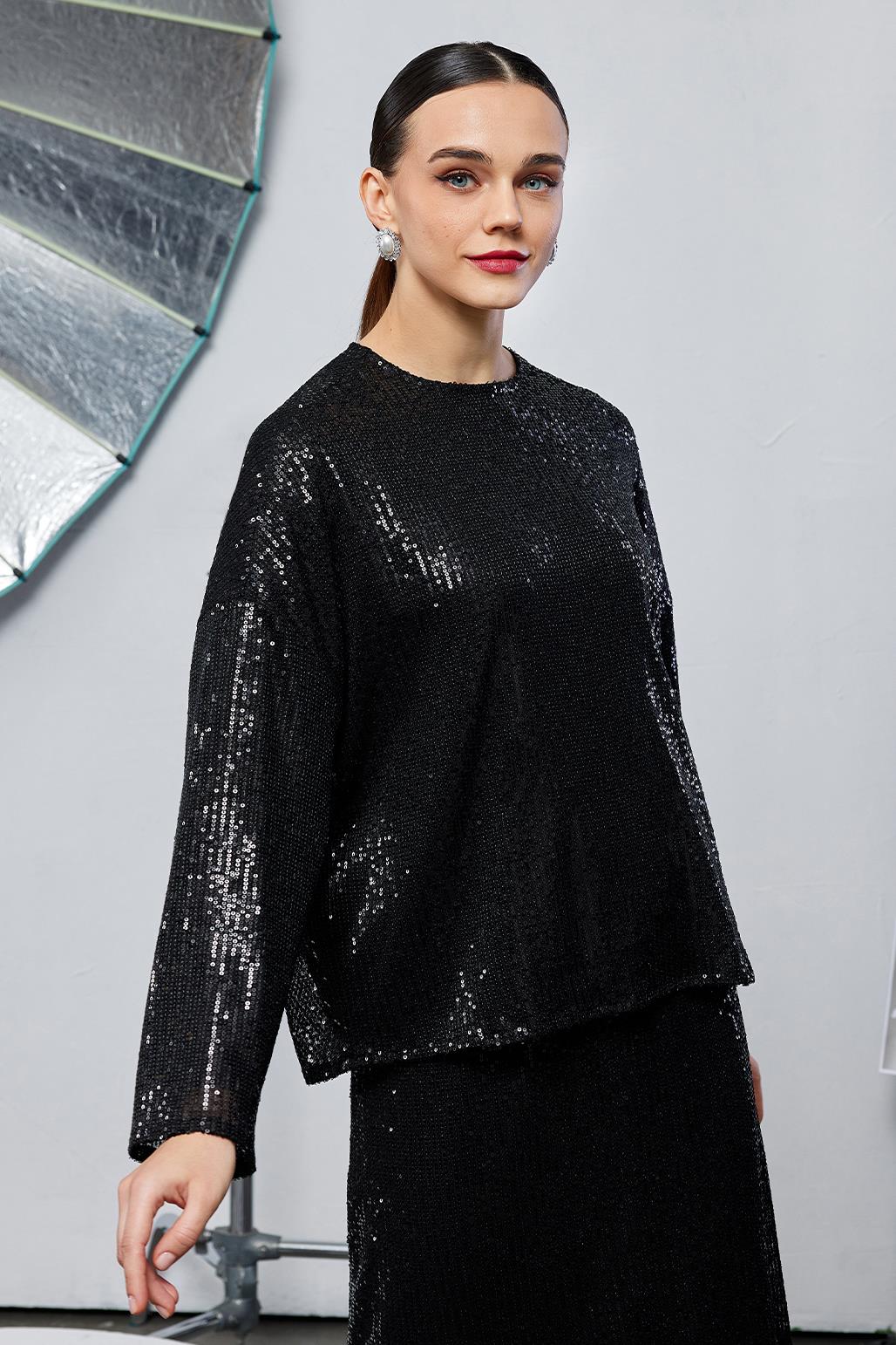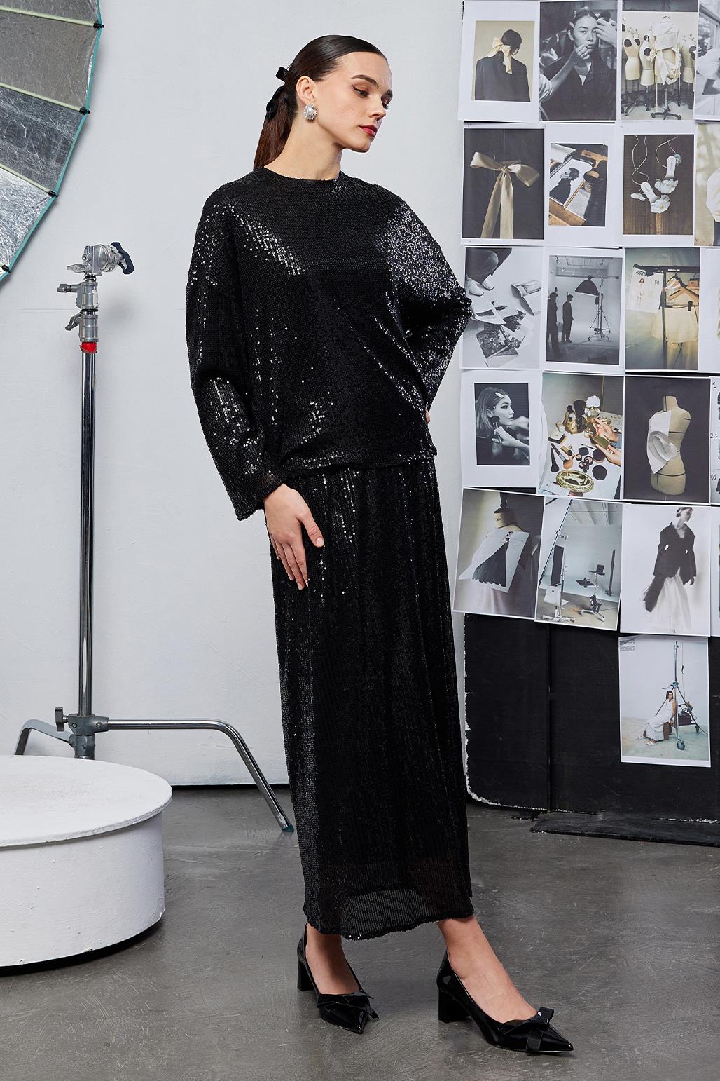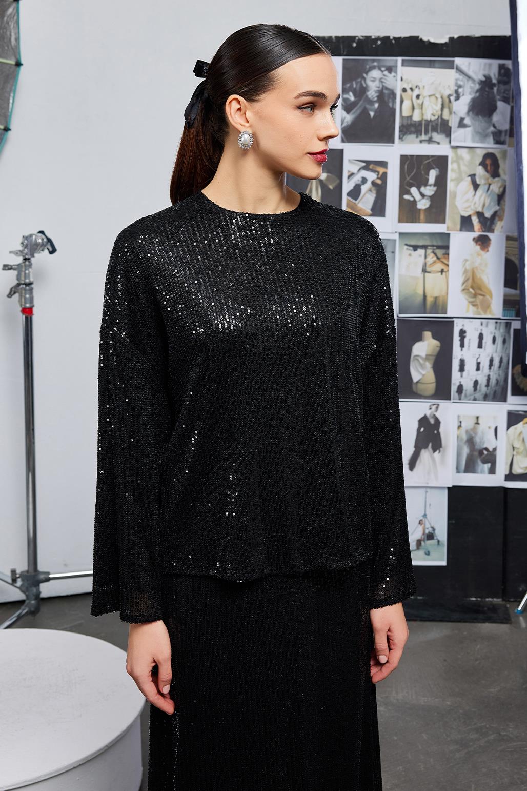 Payet işlemeli galia tunik siyah,payet işleme şık ve trend ikonik görünümün en temel parçası ışıltının en yüksek ve kararlı hali ister etek ister pantolon üzeri kombinlenebilecek kalıp formu ile payet bluz.
