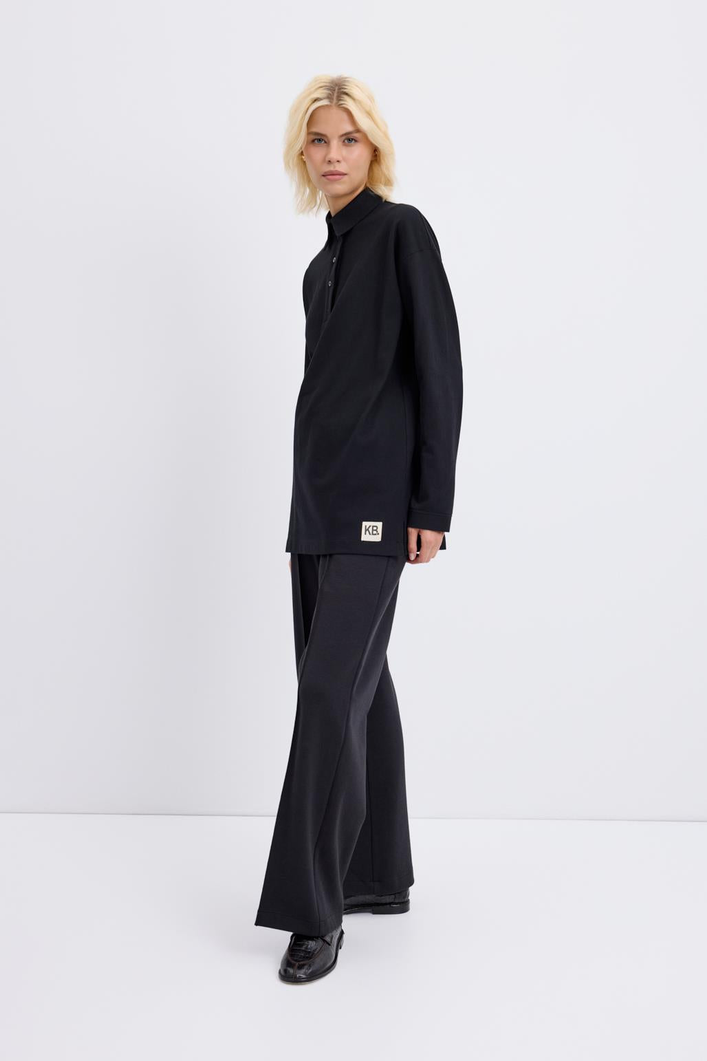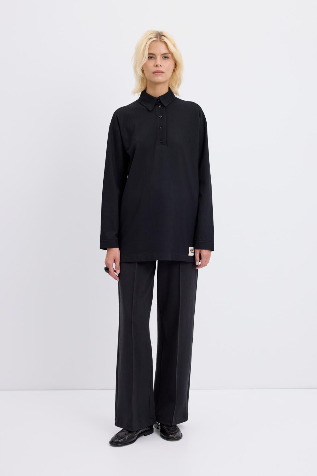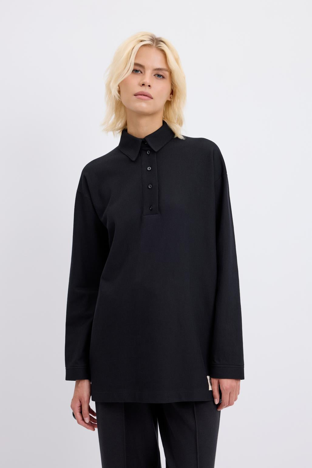 Polo Yaka Yandan Yırtmaçlı Sweatshirt Siyah