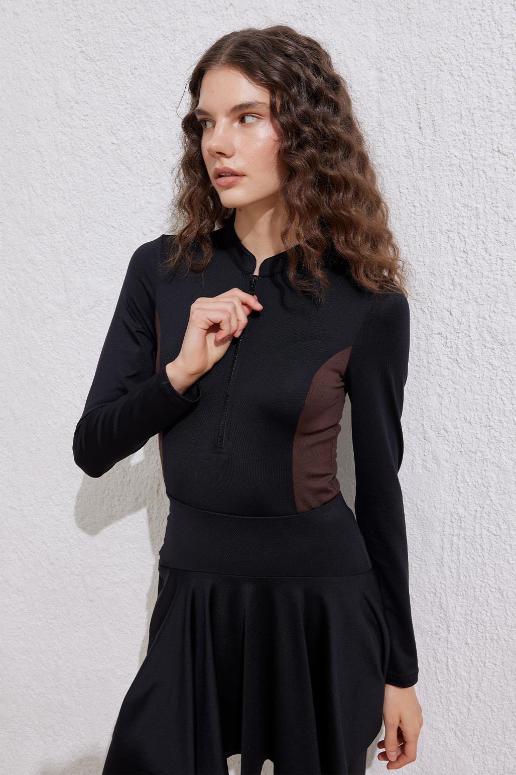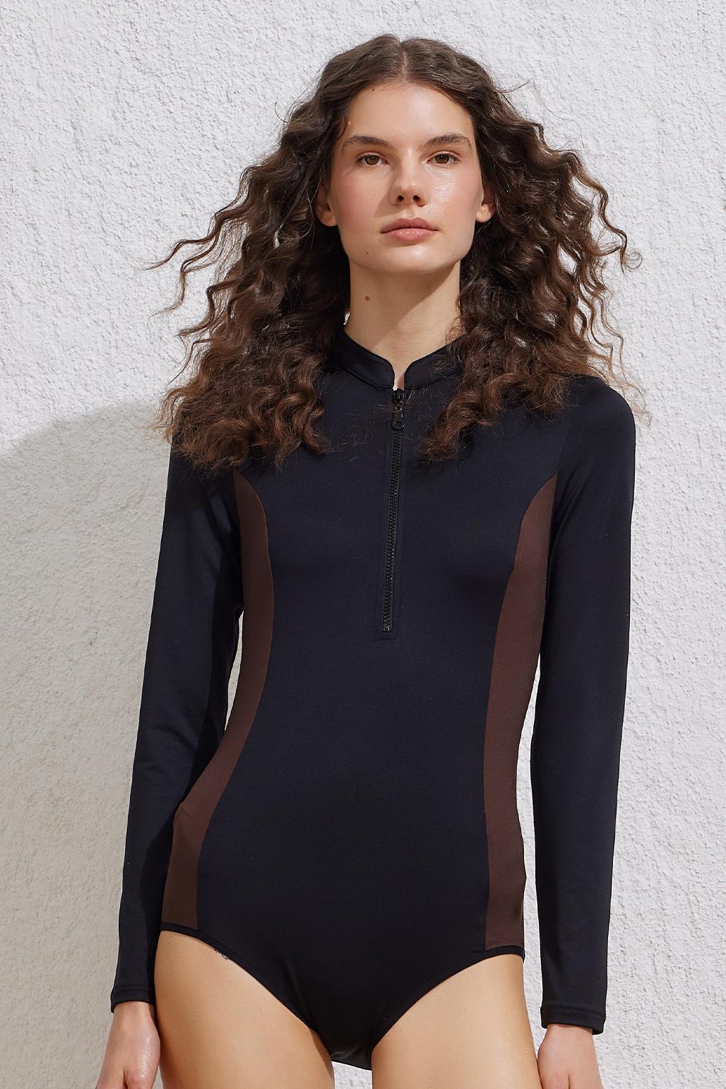 Renk Bloklu Uzun Kollu Yüzücü Mayo tek parça halinde satılmaktadır