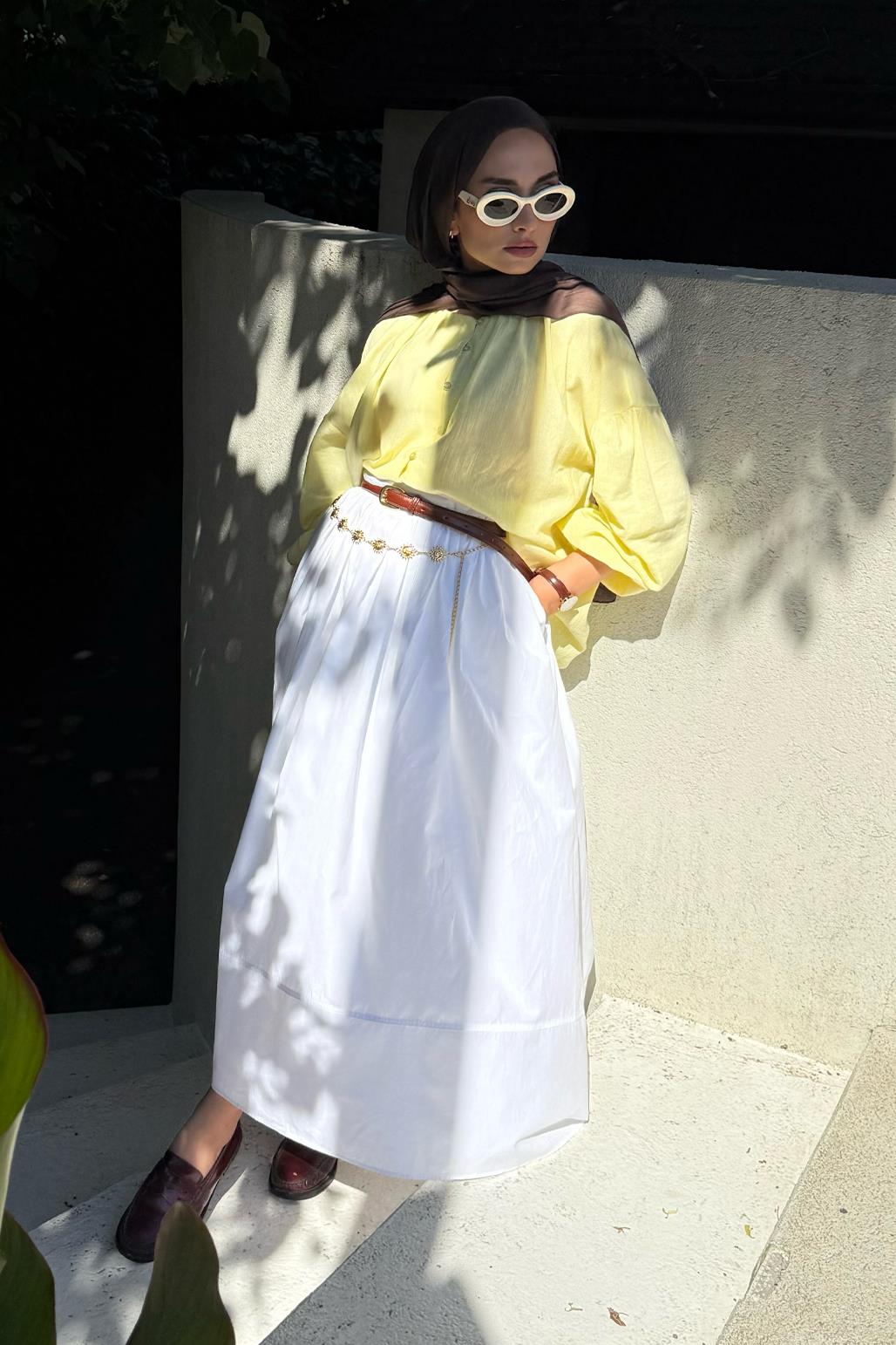 Vera Büzgülü Etek Ekru, pamuk karışımlı keten kumaşı ile hafiflik ve rahatlık sunar. Yüksek bel formu ve fermuar kapanma detayı, konforlu bir kullanım imkanı sağlar Kloş formuyla sizi uzun ve ince göstererek zarif bir görünüm yaratır. Büzgülü detaylar, eteği dinamik ve modern bir hale getirirken, her adımda hareket özgürlüğü sağlar. Şık gömleklerle ve bluzlarla günlük stilinize ve özel günlerinize rahatlıkla uyarlayabilirsiniz.Bu sezon gardırobunuzun vazgeçilmezleri arasında yerini alacak!
