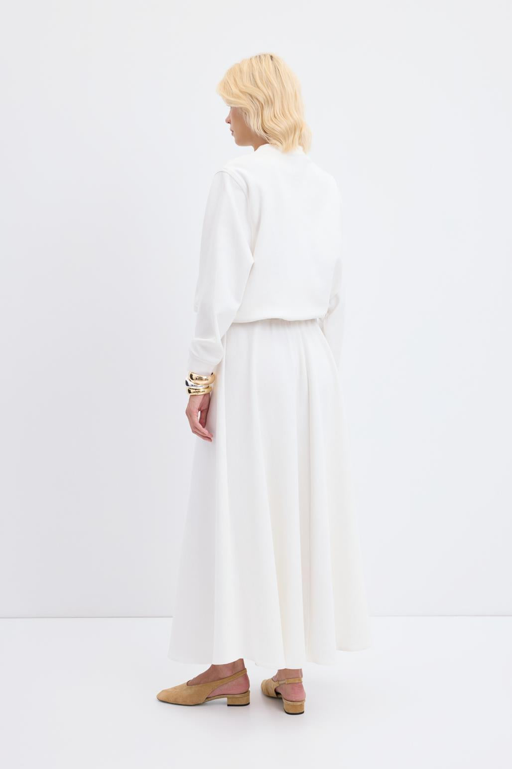 Yüksek Bel Bağcıklı Geniş Form Kloş Etek Ekru