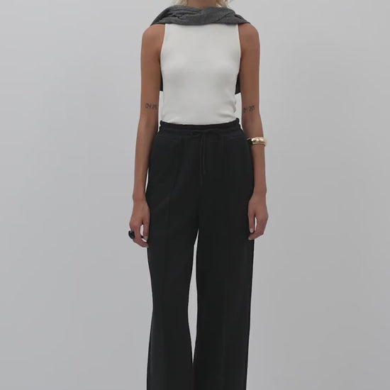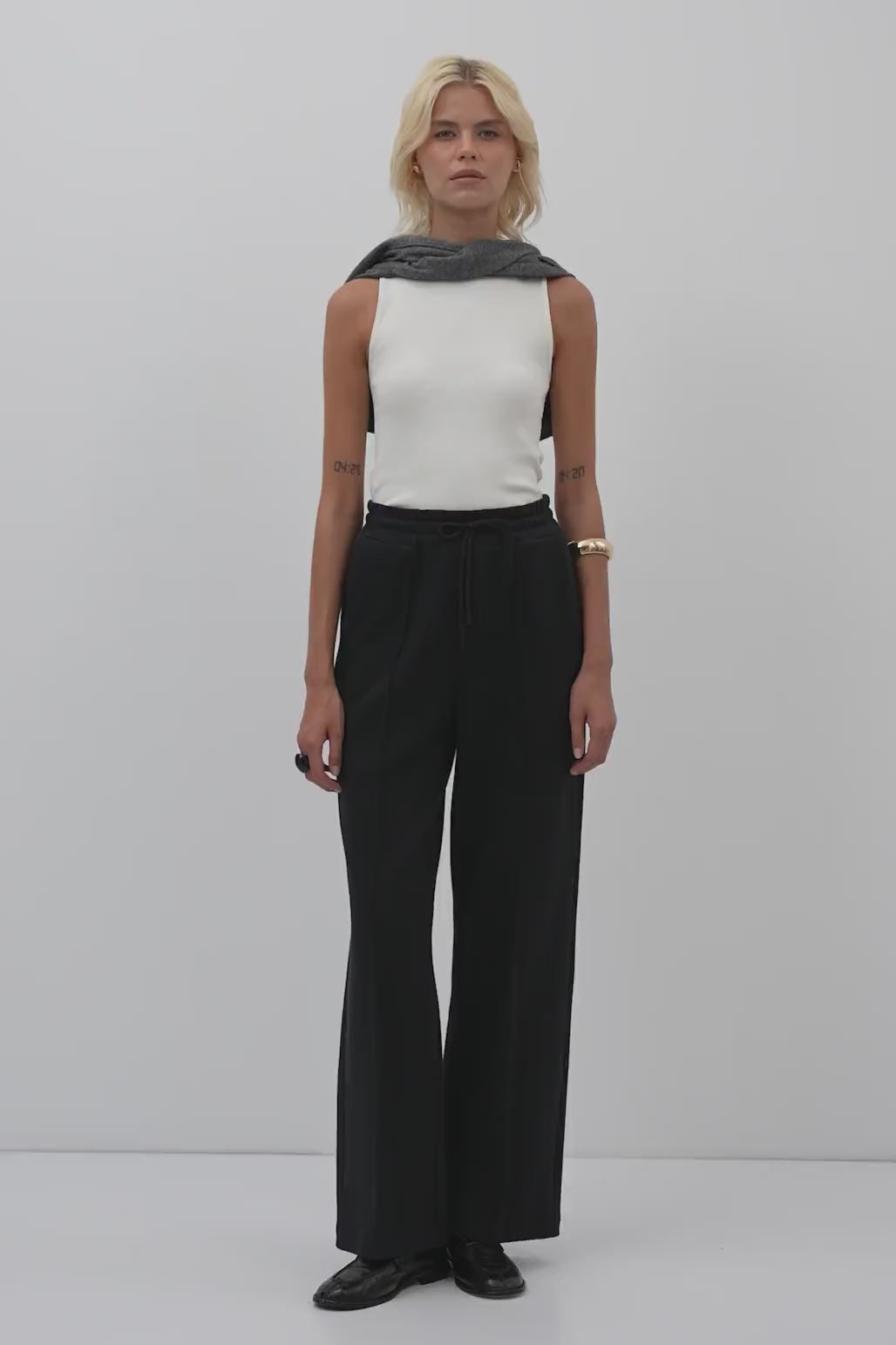 Yüksek Bel Dikiş Detaylı Rahat Kesim Pantolon Siyah