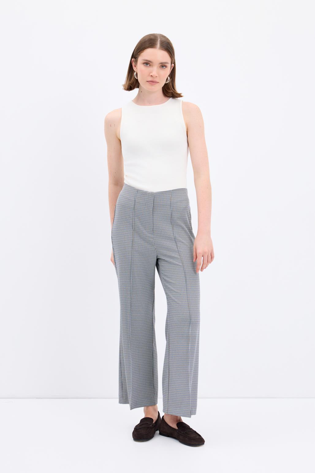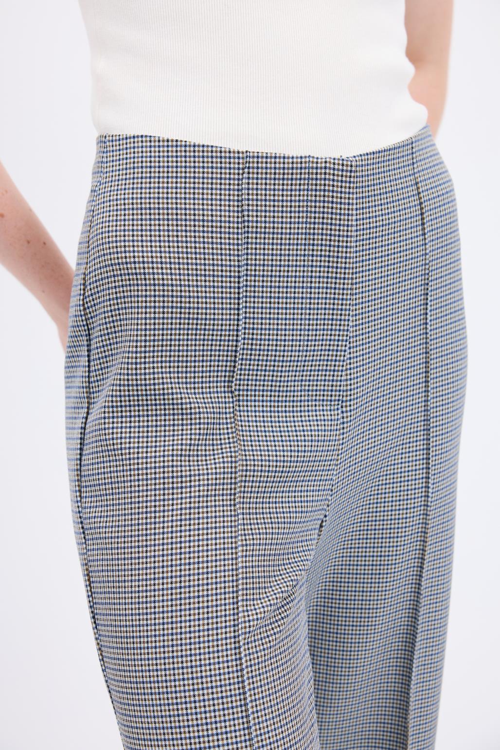 Yüksek Bel Fit Kesim Ekose Desenli Pantolon Lacivert