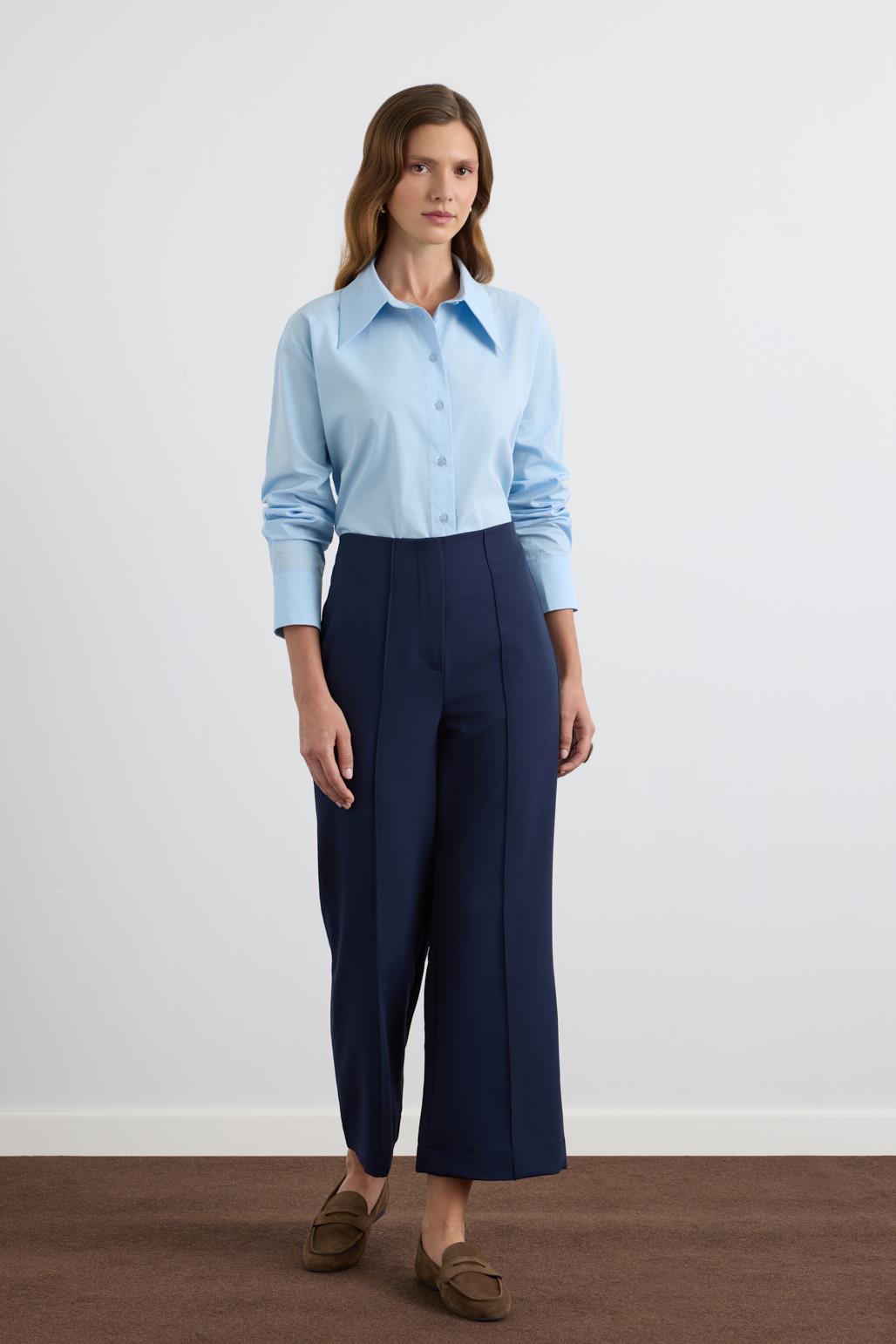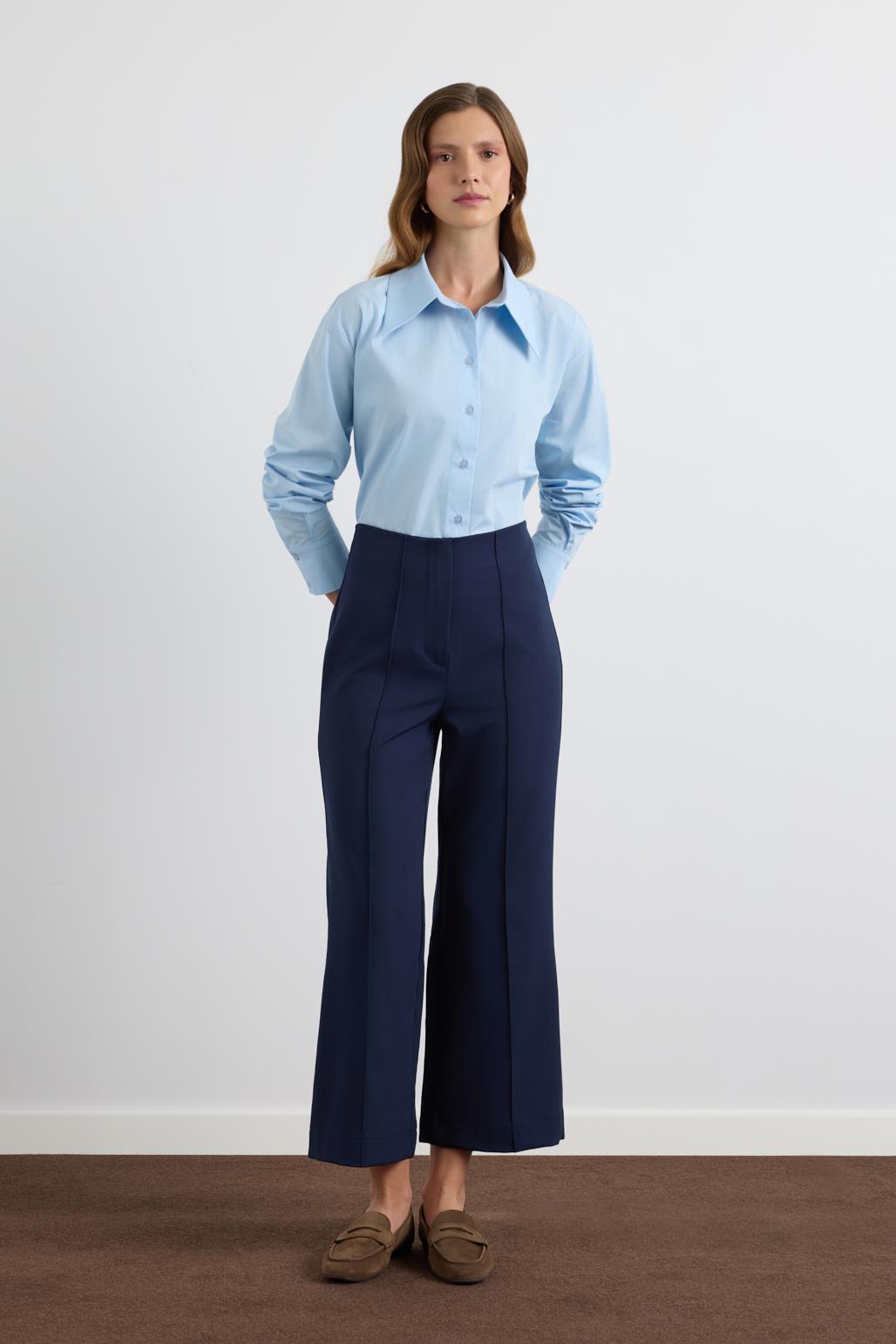 Yüksek Bel Fit Kesim Krep Pantolon Lacivert