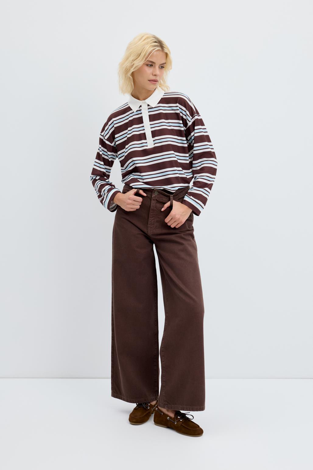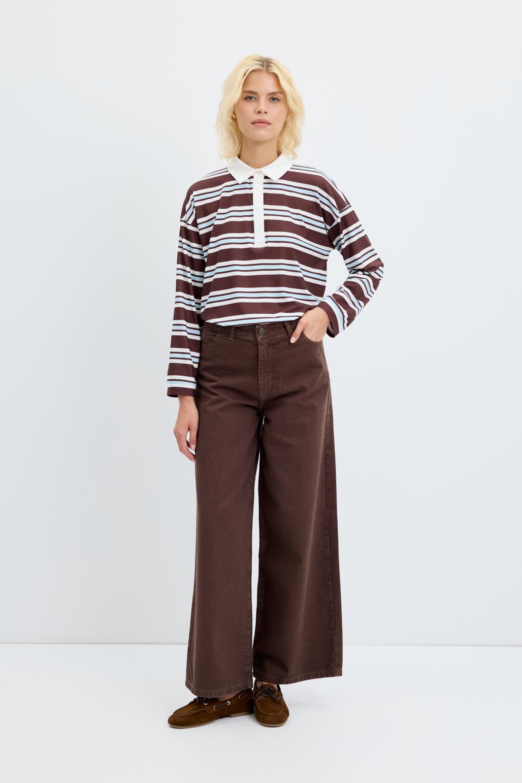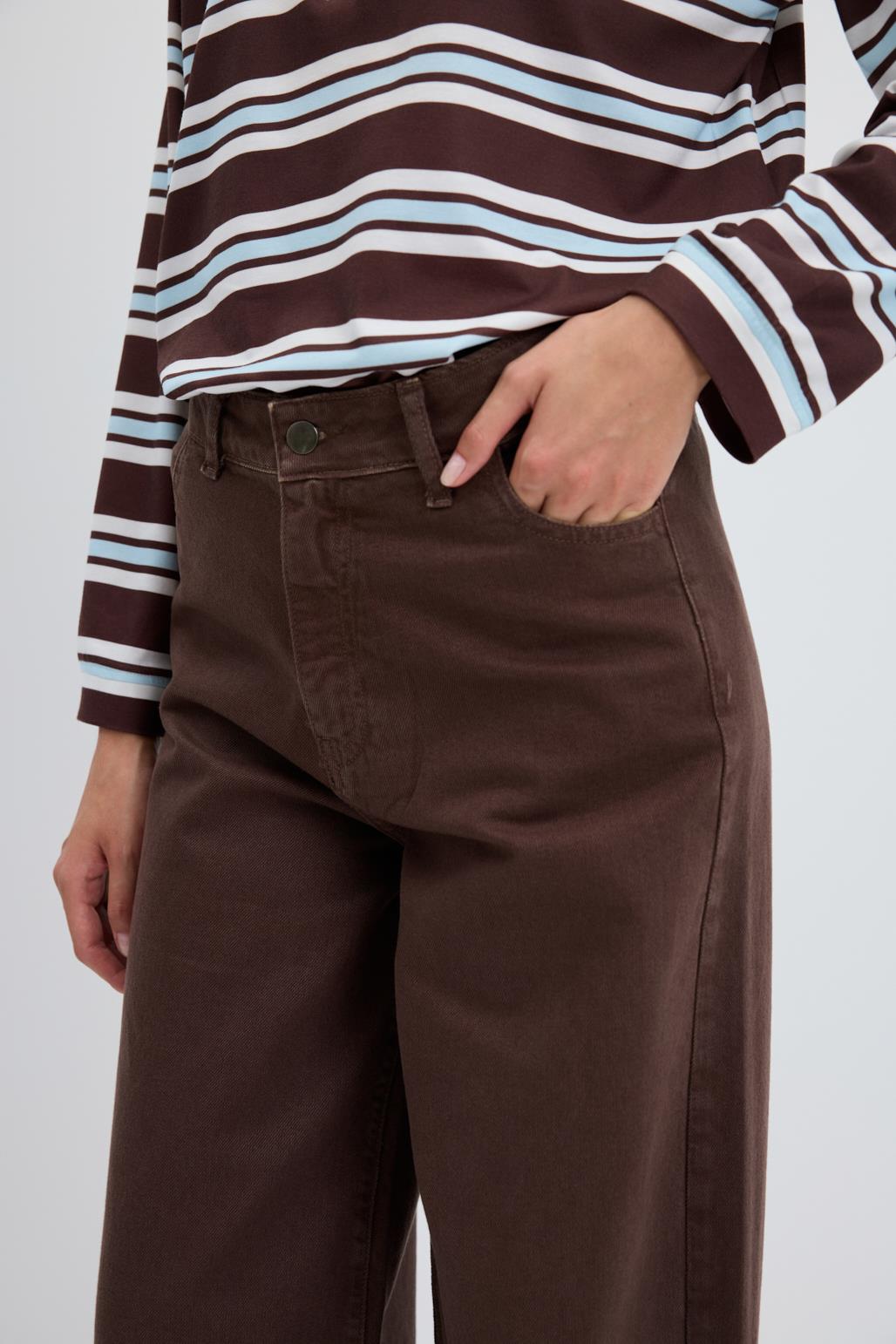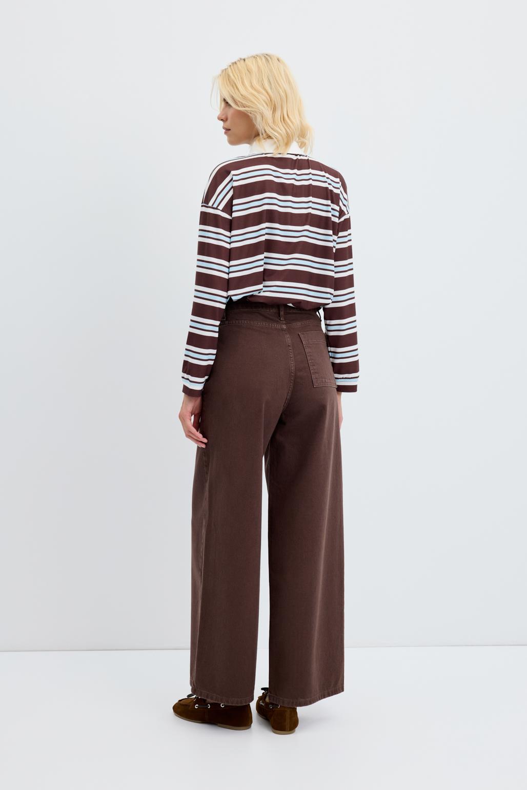 Yüksek Bel Geniş Paça Gabardin Pantolon Kahve