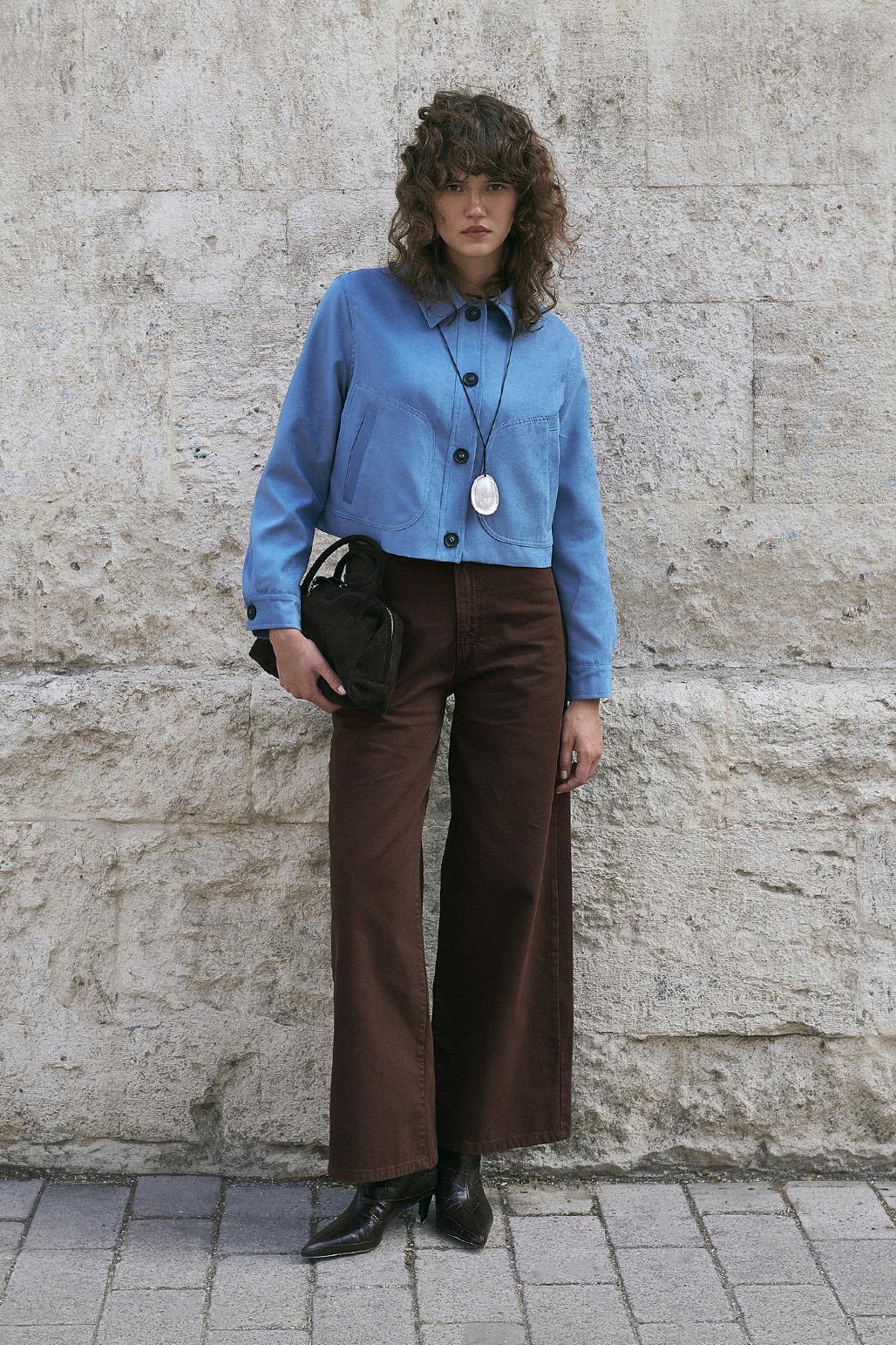 Yüksek Bel Geniş Paça Gabardin Pantolon Kahve, pamuklu gabardin kumaşıyla hem dayanıklı hem de konforlu bir kullanım sunar. Yüksek bel kesimi, zarif bir duruş sağlarken fermuar kapaması pratik bir kullanım imkanı tanır. Geniş paça kesimiyle modern bir siluet oluşturur ve hareket özgürlüğü sağlar. Günlük kombinlerden ofis şıklığına kadar pek çok stilde rahatlıkla tercih edebileceğiniz, dolabınızın çok yönlü parçalarından biri olmaya aday.