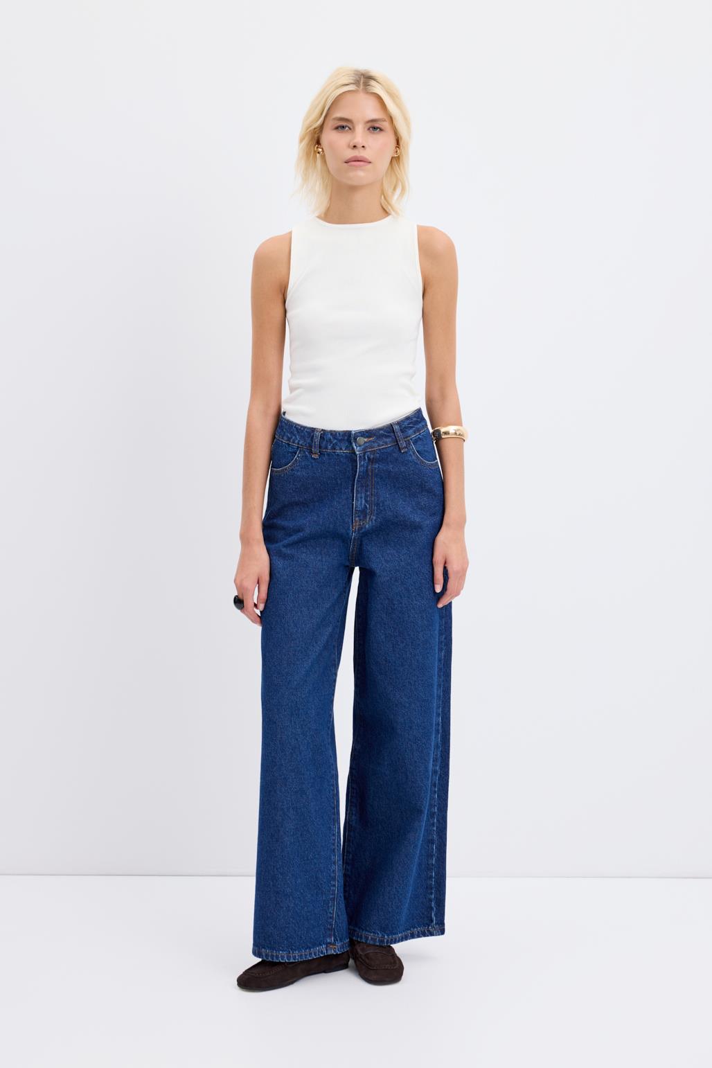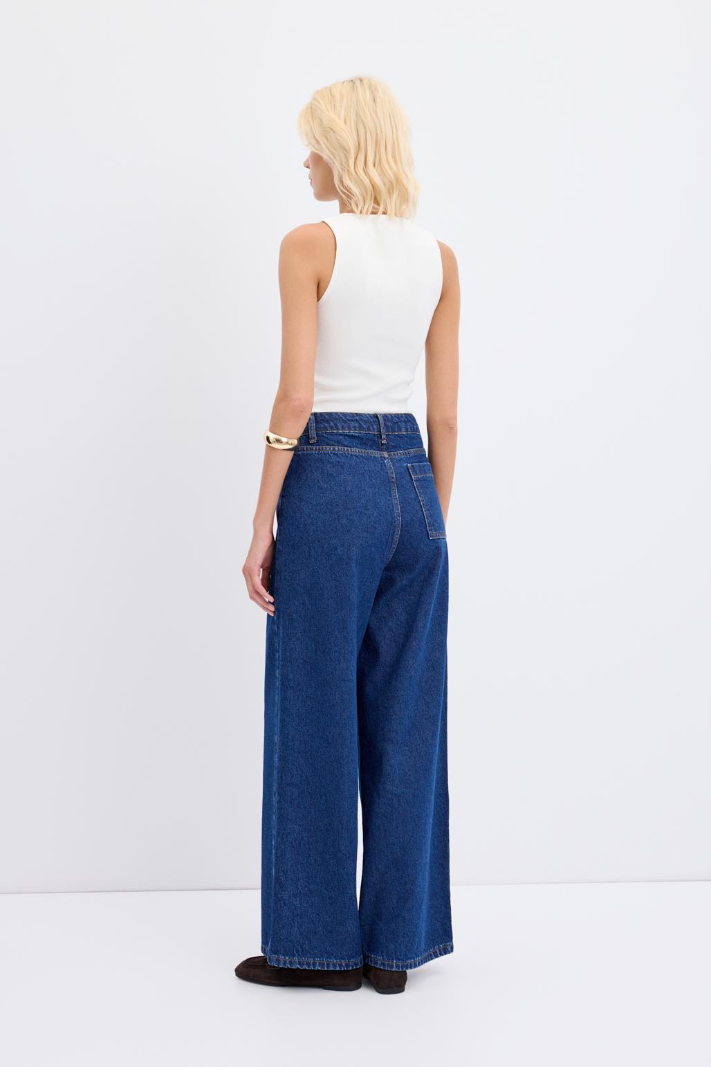 Yüksek Bel Geniş Paça Gabardin Pantolon Koyu Mavi