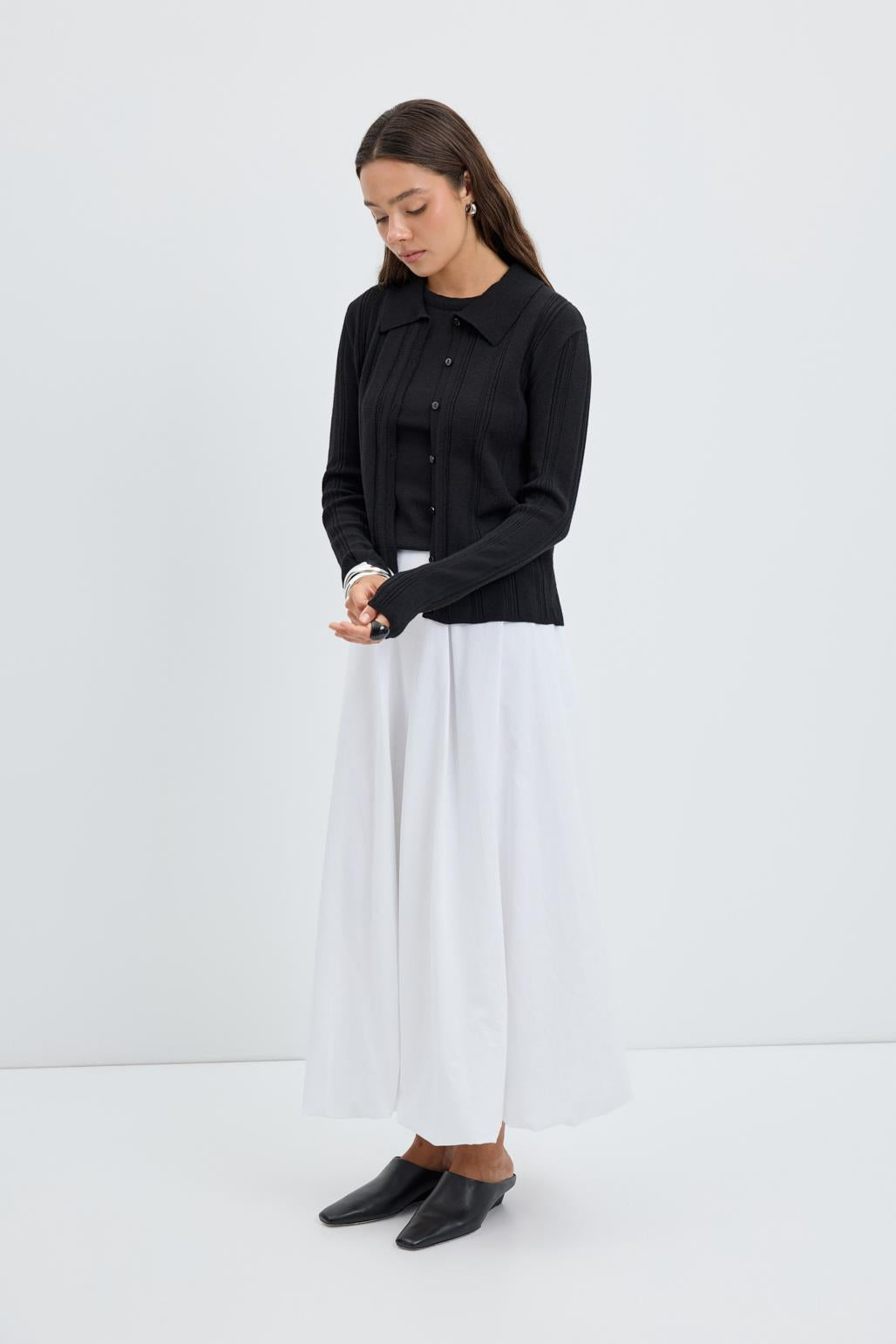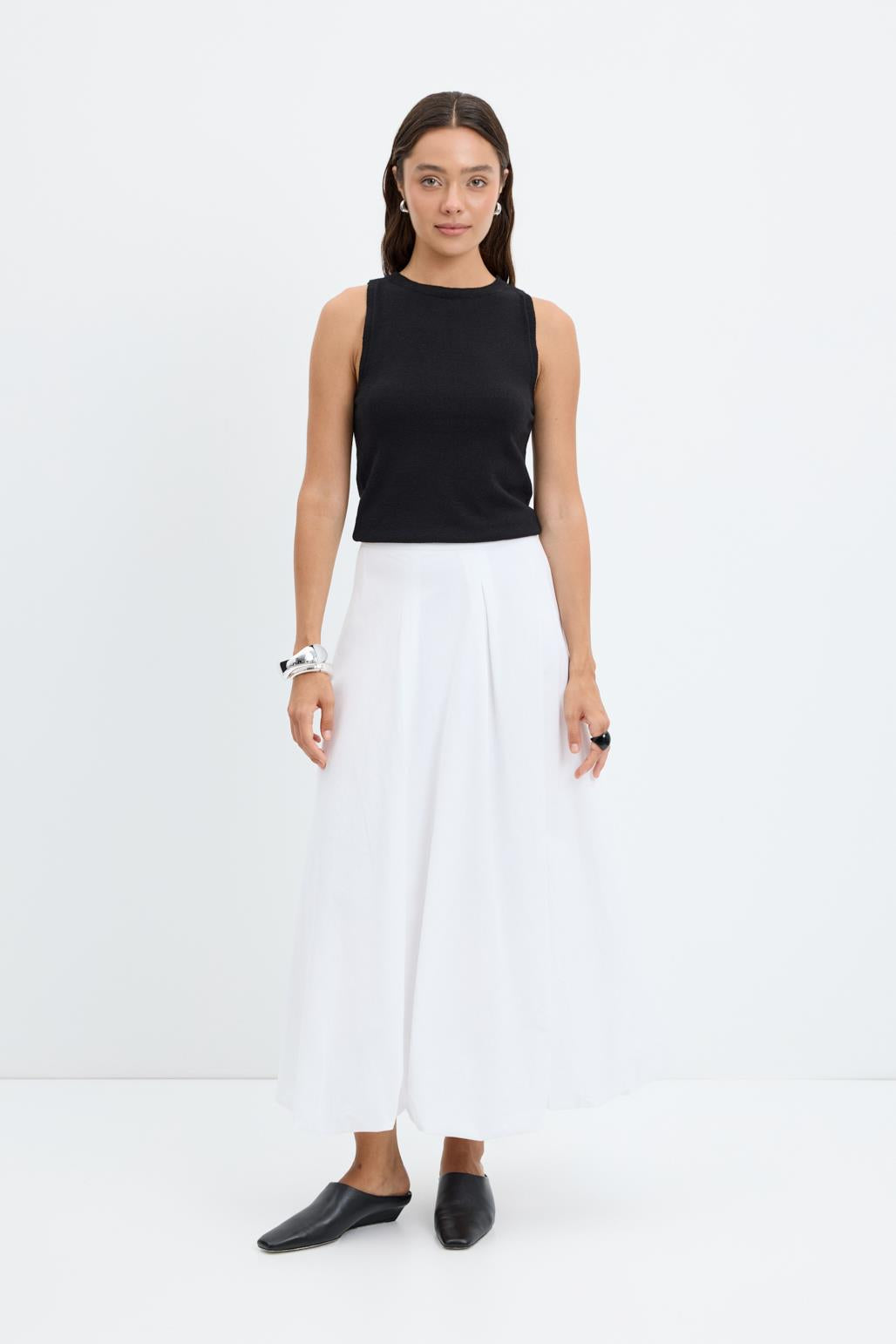 Yüksek Bel Pile Detaylı Balon Etek Ekru