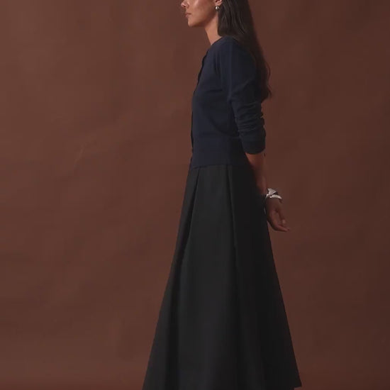 Yüksek Bel Pile Detaylı Balon Etek Siyah